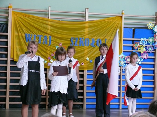 Po miłym letnim wypoczynku większość z nas z ochotą przyszła do szkoły. Zaczęliśmy rok szkolny mszą w kaplicy, po czym udaliśmy się na uroczysty apel. Bohaterami dnia byli oczywiście pierwszoklasiści, którzy po zaprezentowaniu krótkiej części artystycznej złożyli ślubowanie i zostali pasowani na uczniów.