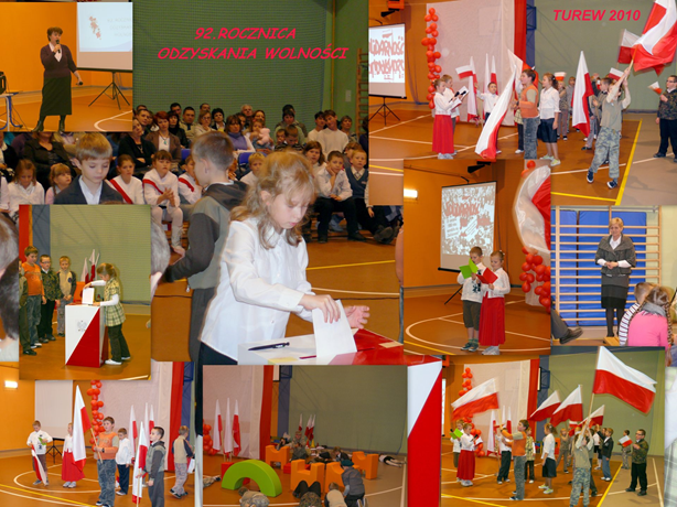 Jak co roku w przeddzień Święta Niepodległości odbyła się w naszej szkole wieczornica z udziałem lokalnej społeczności. Członkowie kółka regionalno-redakcyjnego zaprezentowali program ukazujący ważne wydarzenia w historii naszego kraju po odzyskaniu niepodległości. W kilku scenach uczniowie przypomnieli dwudziestolecie międzywojenne, trudne lata drugiej wojny światowej, strajki studentów w 1968 roku, narodziny Solidarności, pierwsze wolne wybory. Pokazano też czasy najnowsze z przesłaniem, że warto być uczciwym człowiekiem, który ma świadomość własnych korzeni. Dynamiczna gra małych aktorów wywołała chwile grozy, wzruszenia, ale i uśmiechu.