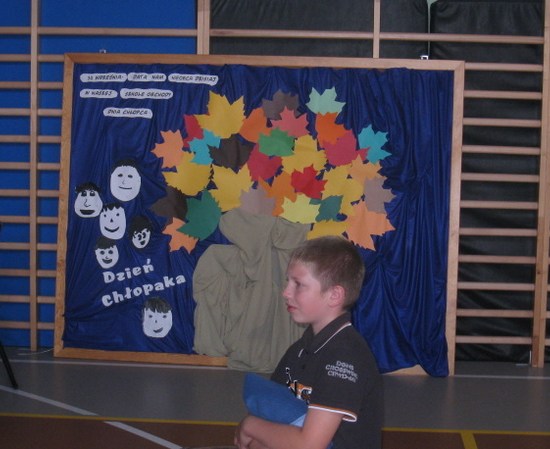Dnia 30 września dziewczyny z naszej szkoły i pani Krystyna Nowak zrobiły wszystkim chłopcom niespodziankę i zorganizowały Dzień Chłopaka. Przygotowały dla nas szereg konkursów, m.in. : na najzabawniejszego, najzaradniejszego, najsilniejszego, najwytrwalszego, najmądrzejszego i najlepiej tańczącego chłopaka. Dziewczyny oceniały popisy chłopców poprzez głosowanie i w ten sposób zostali wyłonieni zwycięzcy w poszczególnych konkurencjach. Było przy tym mnóstwo śmiechu. Każdy chłopak otrzymał przynajmniej jedną szarfę z tytułem wygranego. Po wspaniałej zabawie rozeszliśmy się do swoich sal. Ale to nie był koniec niespodzianek. W klasie czekały na nas słodkości i laurki przygotowane przez nasze cudowne koleżanki. Było bardzo sympatycznie i bawiliśmy się wspaniale.