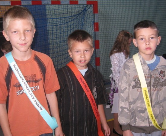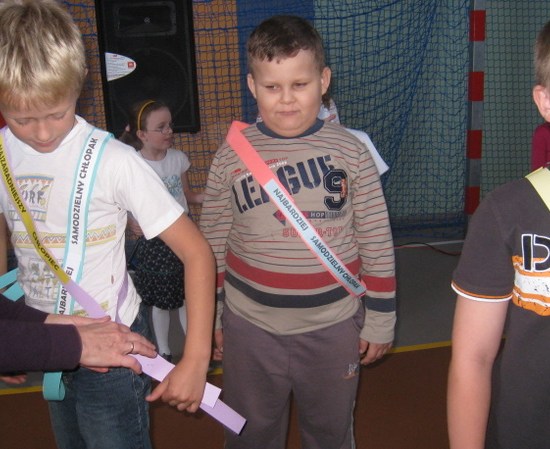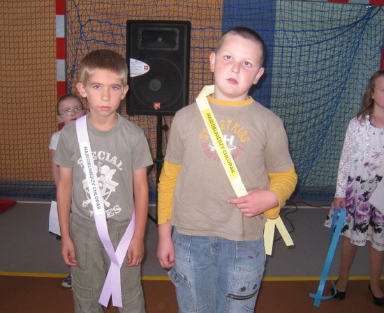 Jak co roku, tylko inaczej niż zwykle, odbył się w naszej szkole Dzień Chłopca. Dziewczyny przygotowały nam niespodziankę – przyjęcie. Było fajnie i bardzo zabawnie. Były prezenty, słodkości (cukierki, wafelki…), moc życzeń, a także wesołe konkursy. W każdej grupie wiekowej wyłoniono zwycięzcę i obdarowano go szarfą. Wyglądaliśmy jak „Miss Polonie”. Tabela zwycięzców ukształtowała się następująco:
