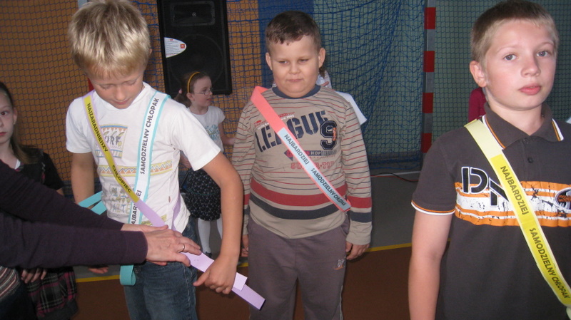 Jak co roku, tylko inaczej niż zwykle, odbył się w naszej szkole Dzień Chłopca. Dziewczyny przygotowały nam niespodziankę – przyjęcie. Było fajnie i bardzo zabawnie. Były prezenty, słodkości (cukierki, wafelki…), moc życzeń, a także wesołe konkursy. W każdej grupie wiekowej wyłoniono zwycięzcę i obdarowano go szarfą. Wyglądaliśmy jak „Miss Polonie”. Tabela zwycięzców ukształtowała się następująco: