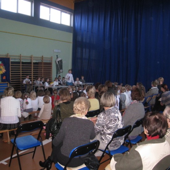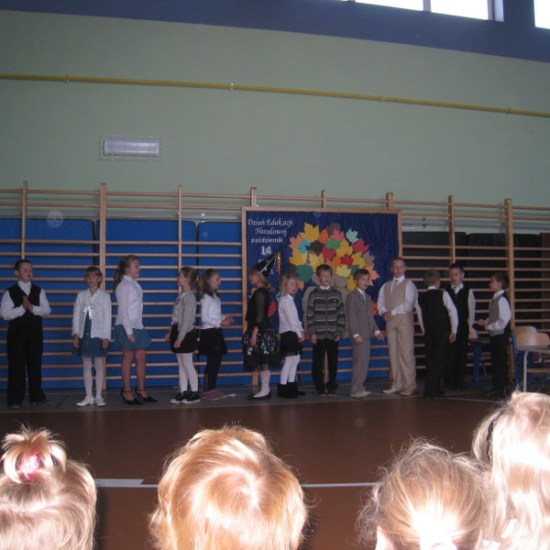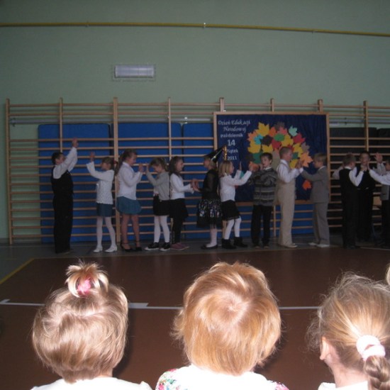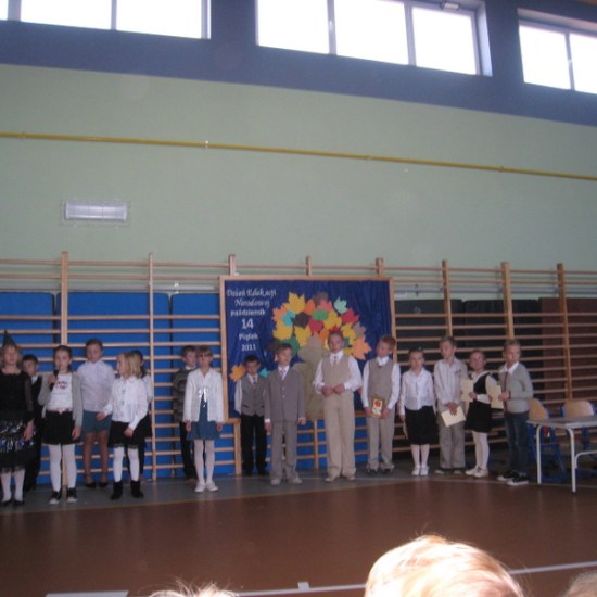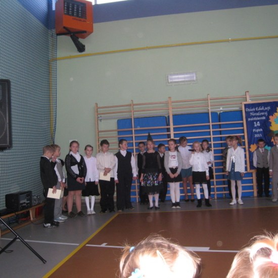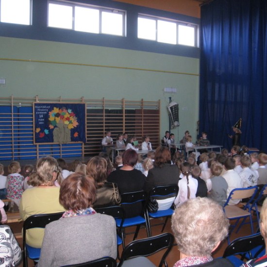W Dzień Nauczyciela otwieraliśmy plac zabaw. Następnie na sali gimnastycznej przedstawialiśmy scenkę z życia szkoły, śpiewaliśmy piosenki i składaliśmy życzenia naszym paniom i wszystkim pracownikom szkoły. Na uroczystości gościliśmy również byłych pracowników- emerytów, przedstawicieli Rady Rodziców oraz Wójta gminy Kościan. Atmosfera była wspaniała.