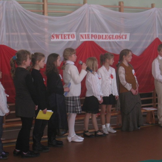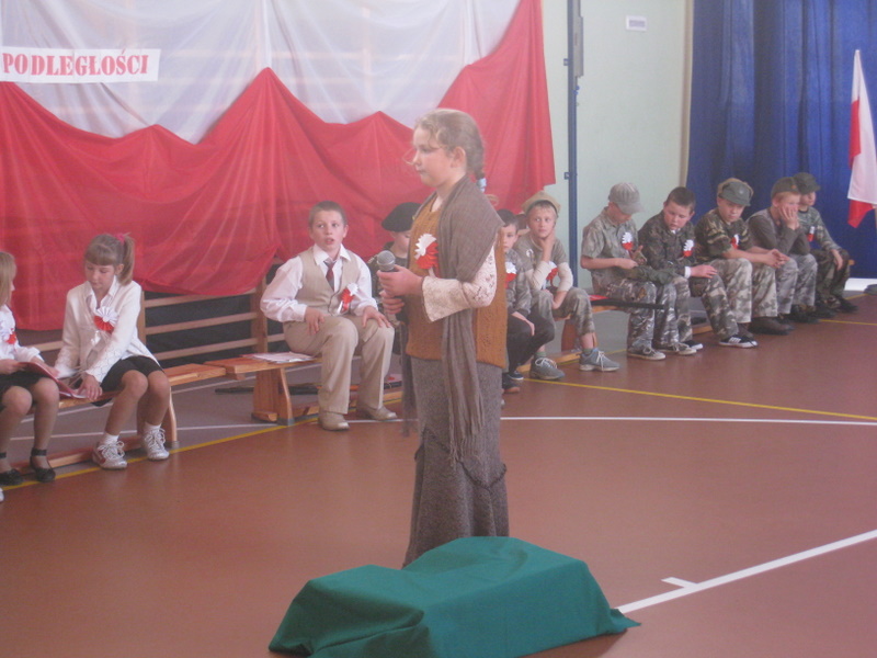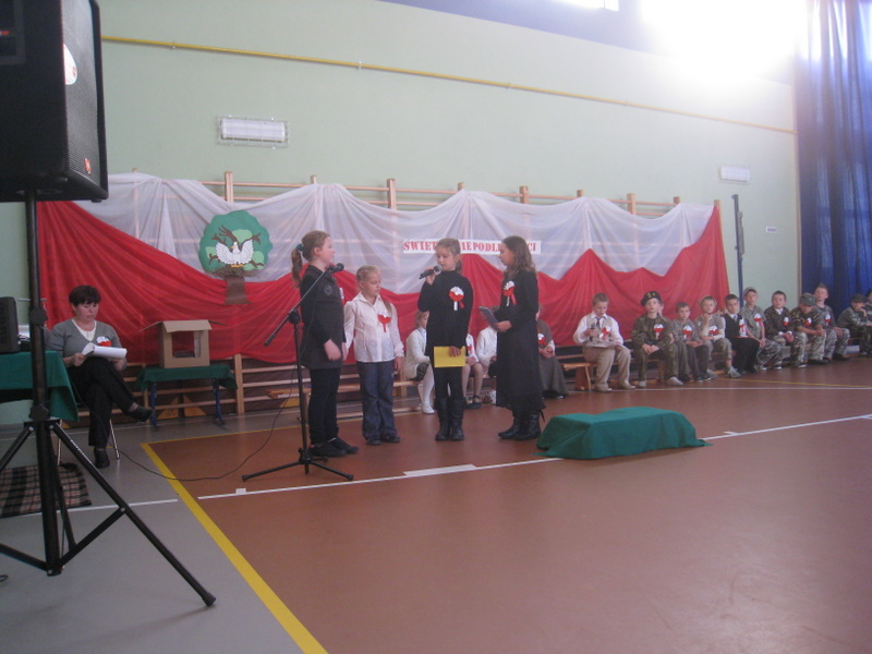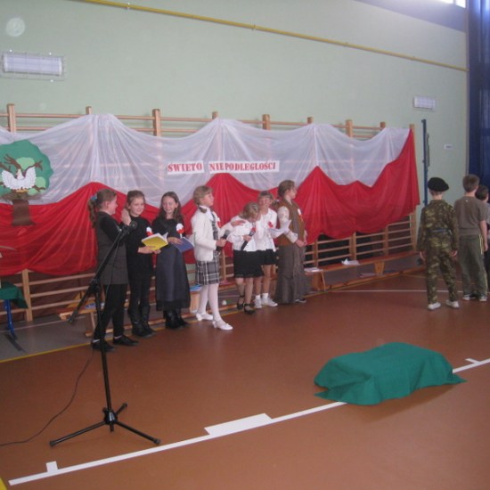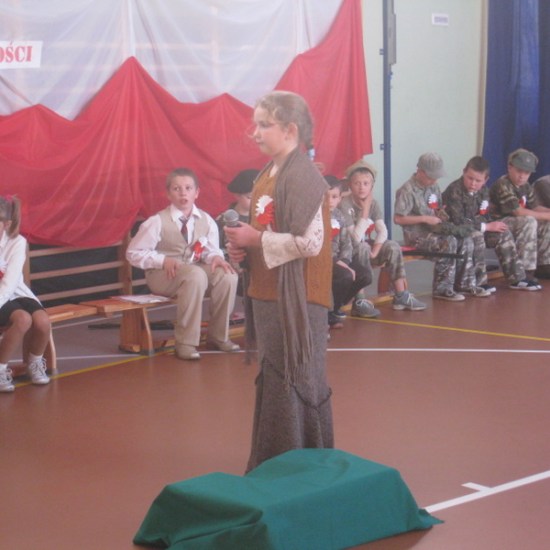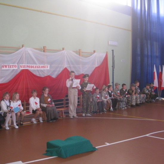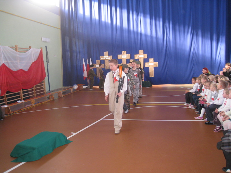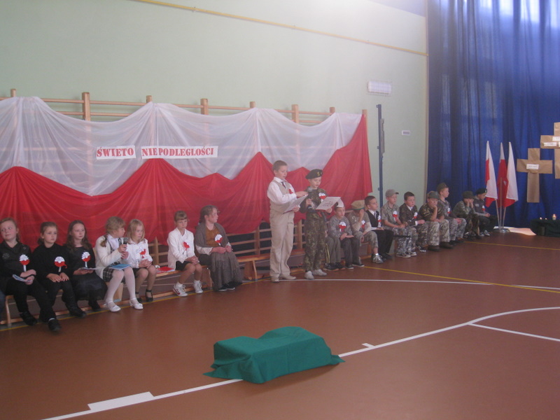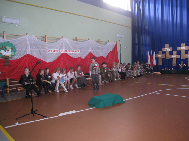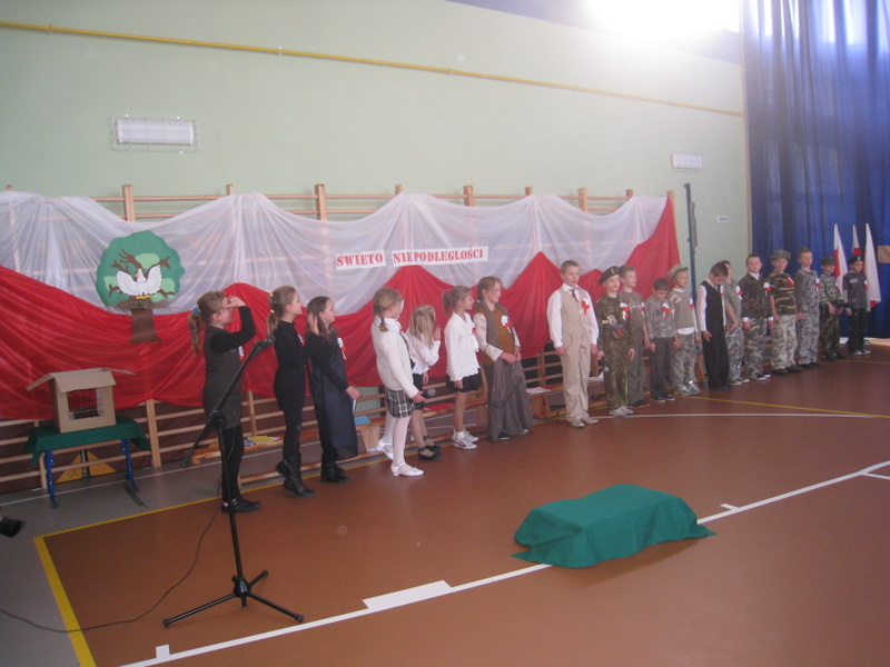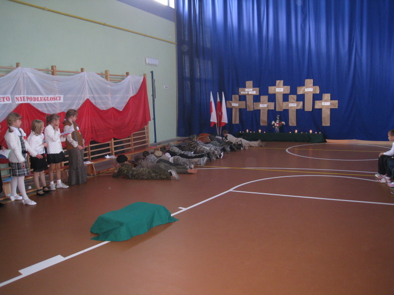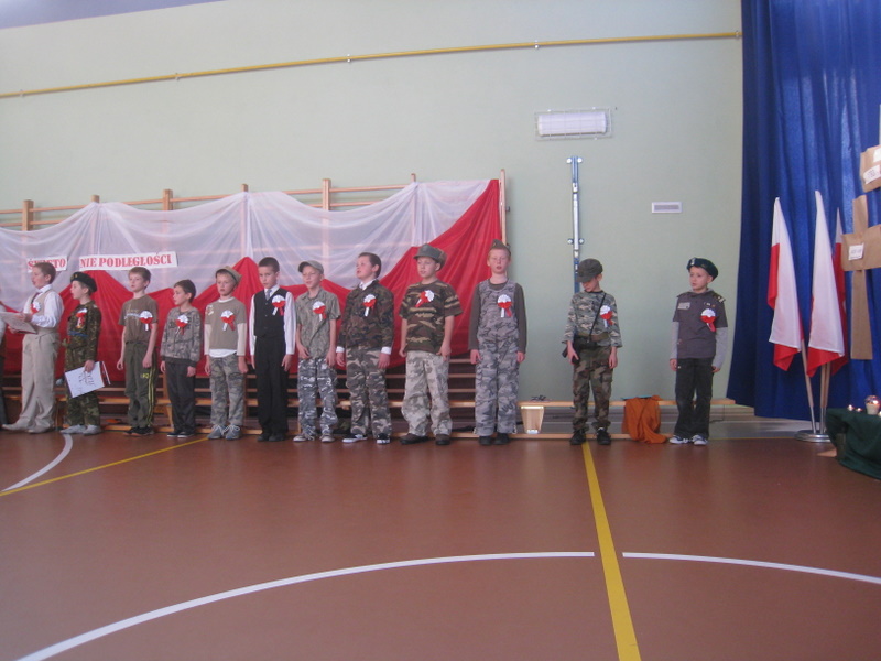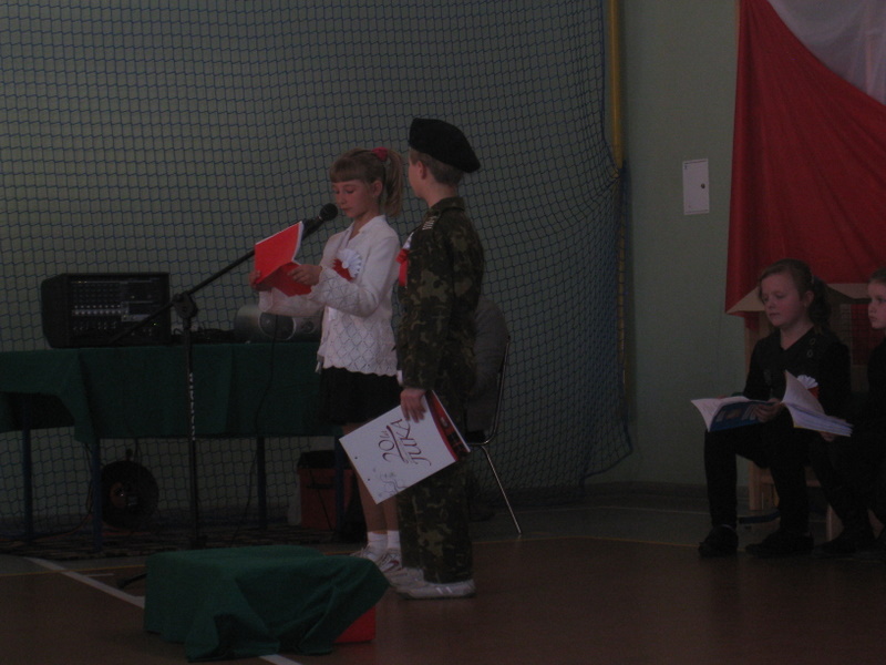 Akademię przygotowali uczniowie klasy trzeciej oraz dzieci z kółka regionalnego z klasy drugiej do scenariusza p. Krystyny Nowak. Klasę pierwszą reprezentowała Wioletka Kabacińska. Dzieci m.in. mówiły teksty Marii Konopnickiej, Edwarda Słońskiego, Konstantego Gaszyńskiego, Artura Oppmana. W programie oprócz znanych pieśni patriotycznych wykorzystano utwory Bułata Okudżawy, Zbigniewa Raja i Jana Pietrzaka, Jarosława Piątkowskiego, Chopina. Pomimo trudnej tematyki, jak i repertuaru mali artyści doskonale czuli swoje role i wspaniale sobie poradzili!