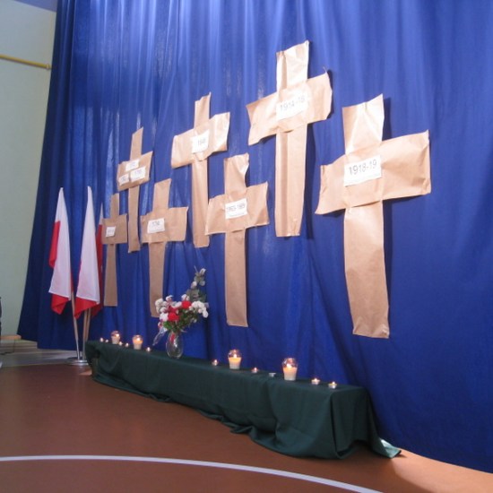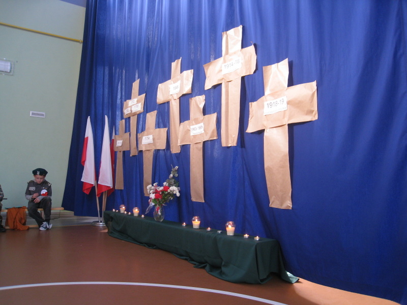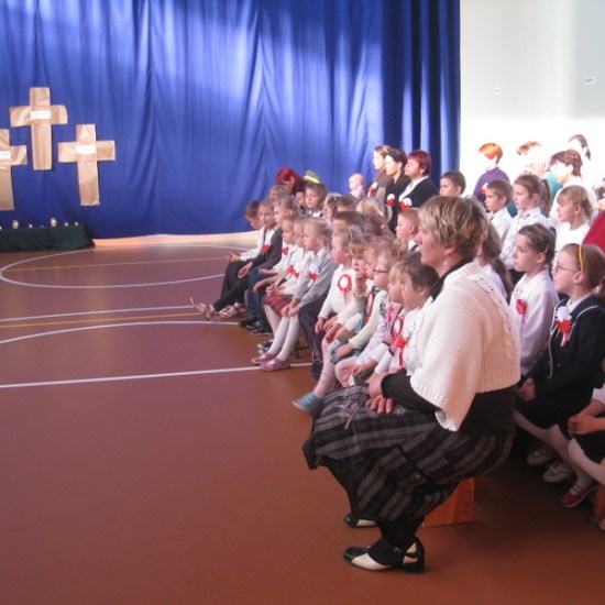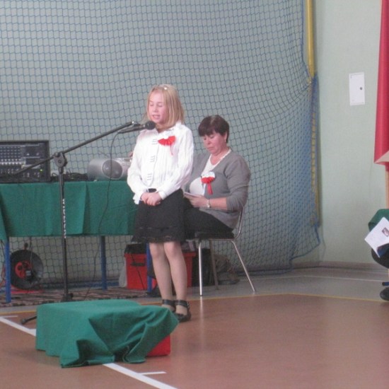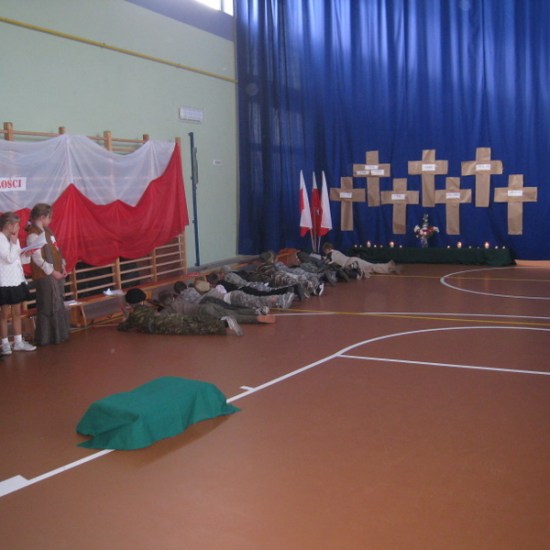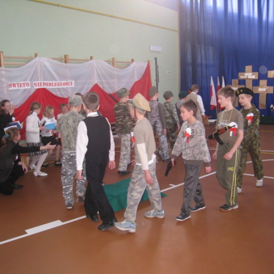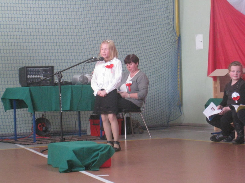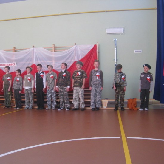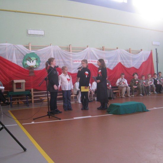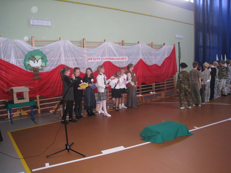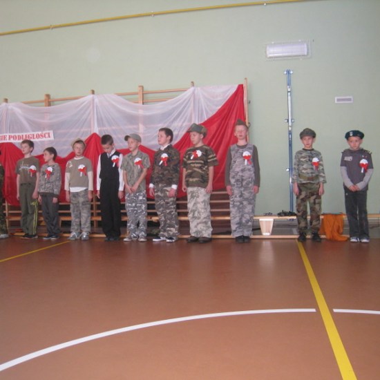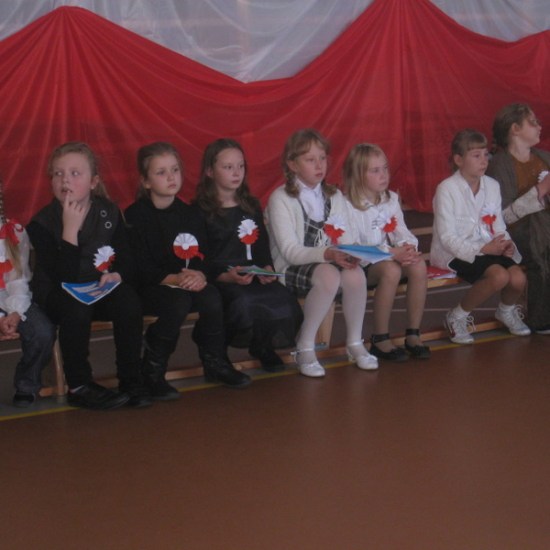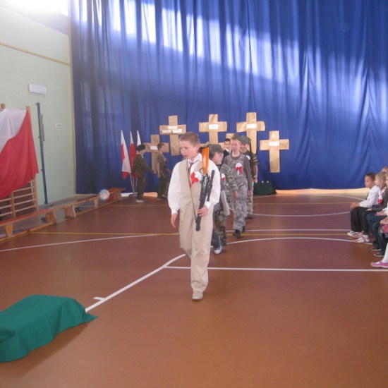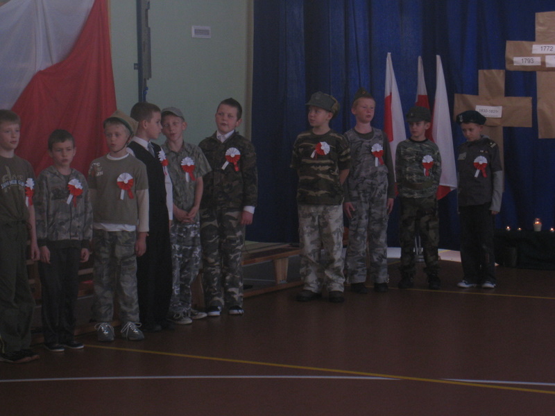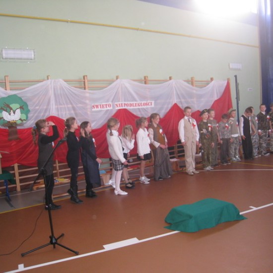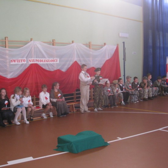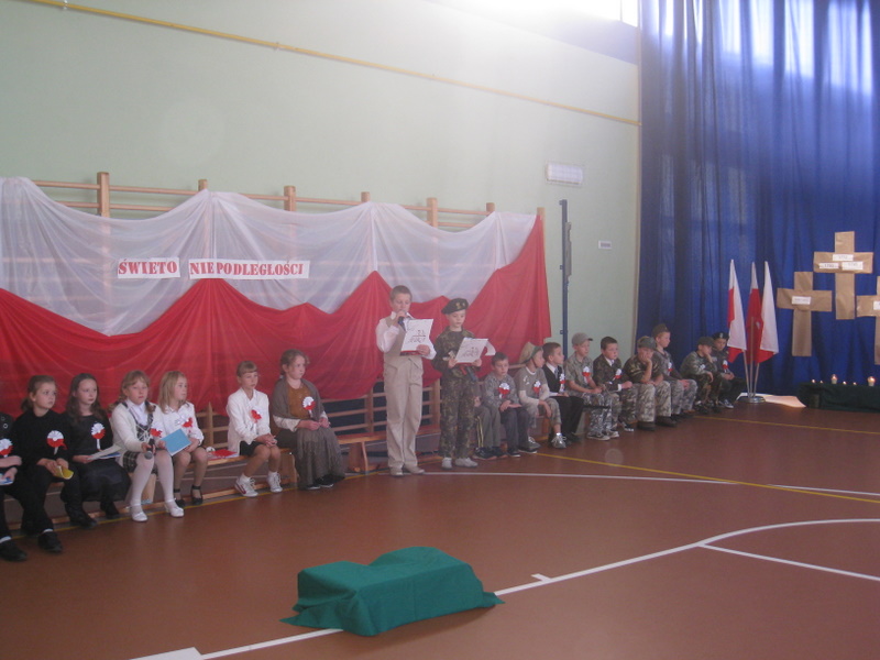 Akademię przygotowali uczniowie klasy trzeciej oraz dzieci z kółka regionalnego z klasy drugiej do scenariusza p. Krystyny Nowak. Klasę pierwszą reprezentowała Wioletka Kabacińska. Dzieci m.in. mówiły teksty Marii Konopnickiej, Edwarda Słońskiego, Konstantego Gaszyńskiego, Artura Oppmana. W programie oprócz znanych pieśni patriotycznych wykorzystano utwory Bułata Okudżawy, Zbigniewa Raja i Jana Pietrzaka, Jarosława Piątkowskiego, Chopina. Pomimo trudnej tematyki, jak i repertuaru mali artyści doskonale czuli swoje role i wspaniale sobie poradzili!
