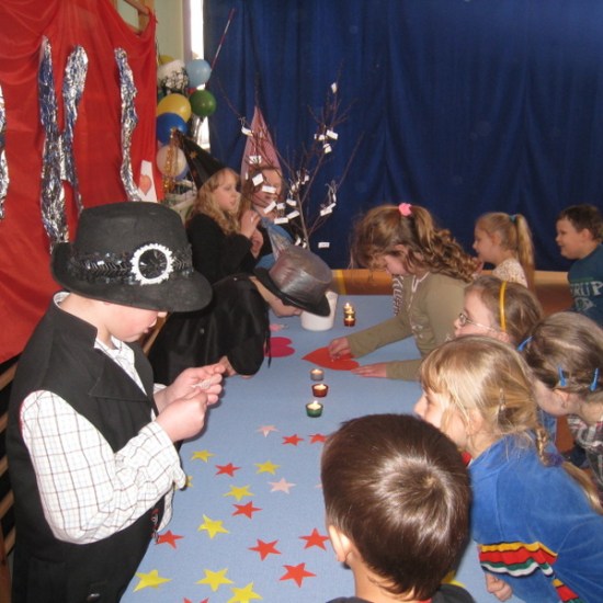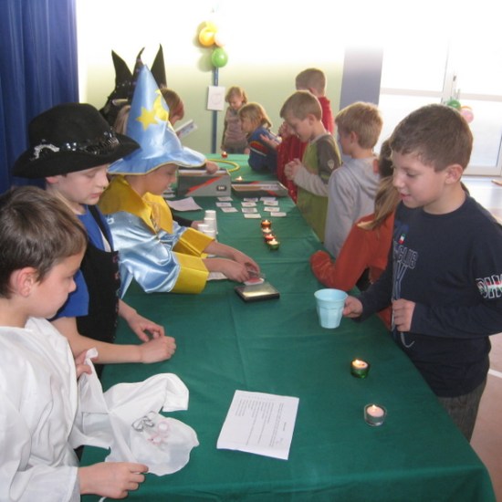 Tegoroczne andrzejki przygotowała klasa III wraz ze swoją wychowawczynią, panią Krysią. Był to dzień niezwykły, pełen wróżb i magii. Przebrani za czarodziejów i wróżki przepowiadaliśmy przyszłość młodszym kolegom i koleżankom. Mieliśmy do tego celu różne rekwizyty, karty, butelkę, kubki i kostki do gry. Dziewczynki przebrane za czarownice wykonały taniec z miotłami. Opowiadaliśmy o tym jak powstały andrzejki i jak kiedyś wróżono. Tańczyliśmy przy fajnej muzyce, więc zabawa andrzejkowa była bardzo udana. Było mnóstwo śmiechu i zabawy. Nasze mamy jak zwykle o nas nie zapomniały i przygotowały dla nas pyszne słodkości. Ten dzień był naprawdę niezwykły i niesamowity.