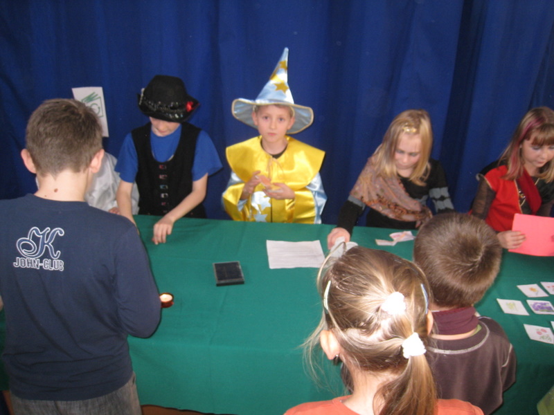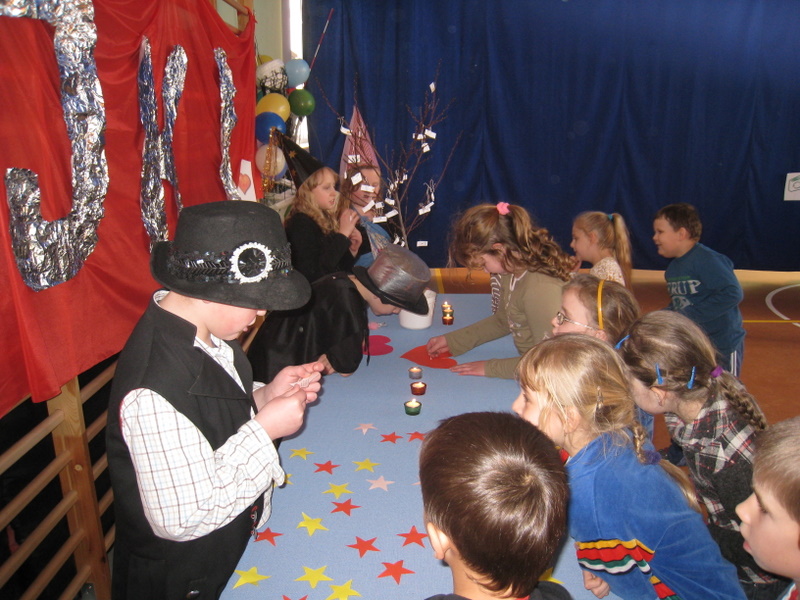 Tegoroczne andrzejki przygotowała klasa III wraz ze swoją wychowawczynią, panią Krysią. Był to dzień niezwykły, pełen wróżb i magii. Przebrani za czarodziejów i wróżki przepowiadaliśmy przyszłość młodszym kolegom i koleżankom. Mieliśmy do tego celu różne rekwizyty, karty, butelkę, kubki i kostki do gry. Dziewczynki przebrane za czarownice wykonały taniec z miotłami. Opowiadaliśmy o tym jak powstały andrzejki i jak kiedyś wróżono. Tańczyliśmy przy fajnej muzyce, więc zabawa andrzejkowa była bardzo udana. Było mnóstwo śmiechu i zabawy. Nasze mamy jak zwykle o nas nie zapomniały i przygotowały dla nas pyszne słodkości. Ten dzień był naprawdę niezwykły i niesamowity.