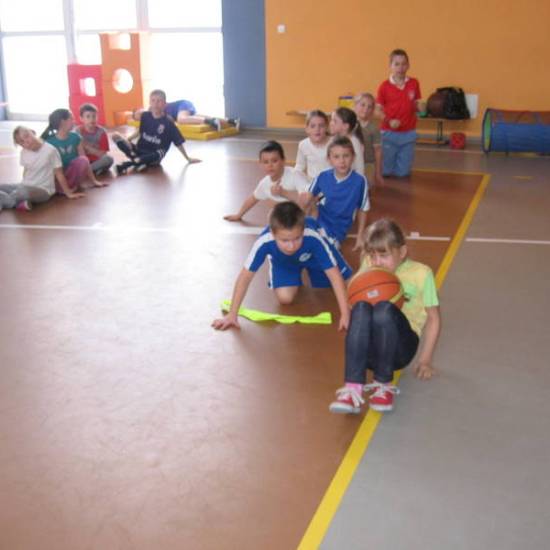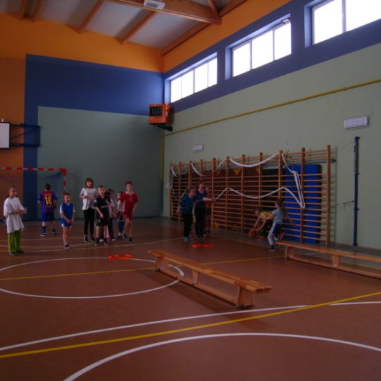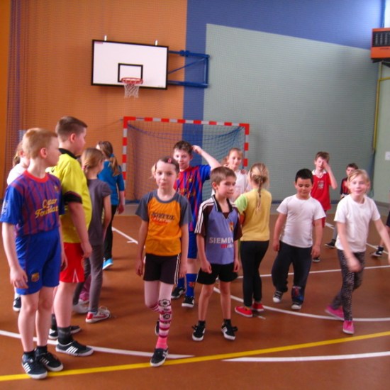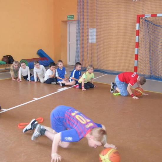 Od godz. 9.00 do 12.00 były gry i zabawy na sali sportowej. Skakaliśmy, biegaliśmy i rzucaliśmy piłką do kosza.