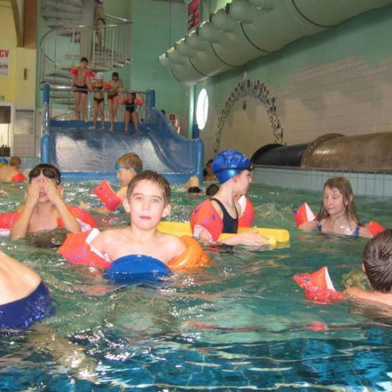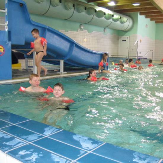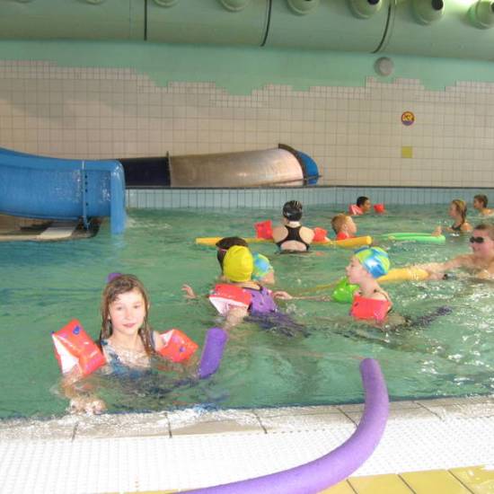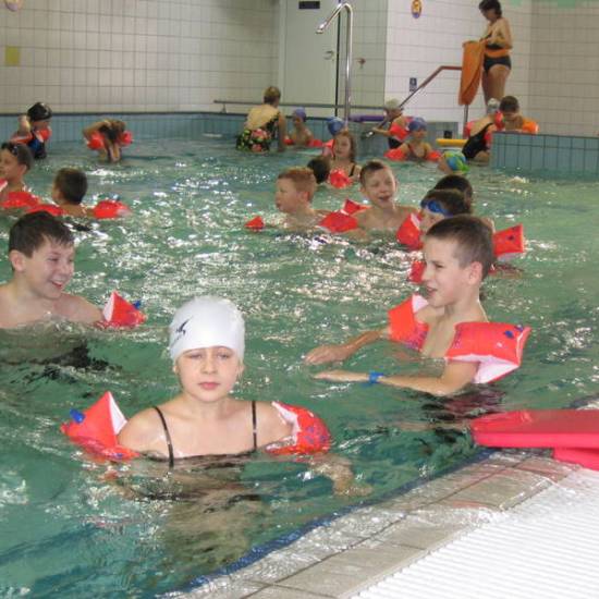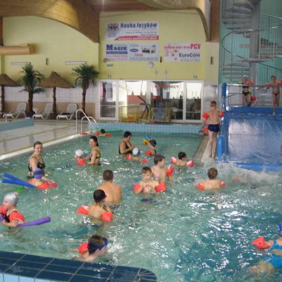 Pojechaliśmy na basen. Było super. Zjeżdżaliśmy ze zjeżdżalni, pływaliśmy i kąpaliśmy się.