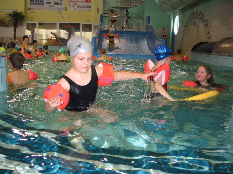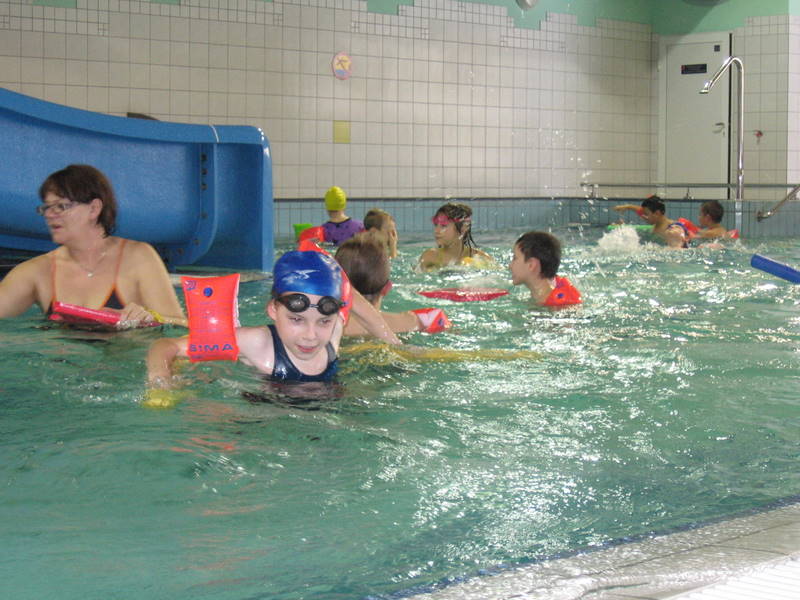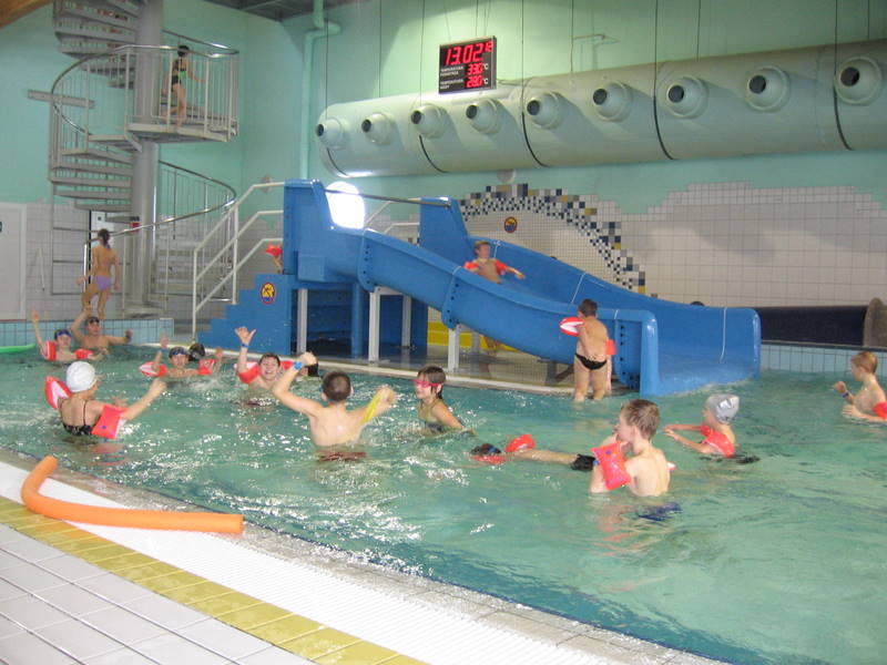 Pojechaliśmy na basen. Było super. Zjeżdżaliśmy ze zjeżdżalni, pływaliśmy i kąpaliśmy się.