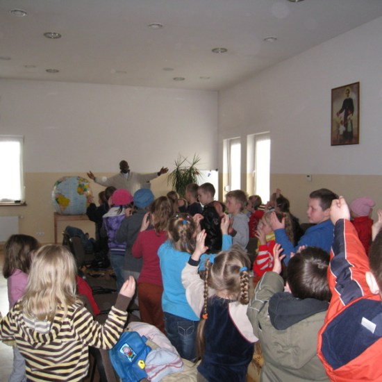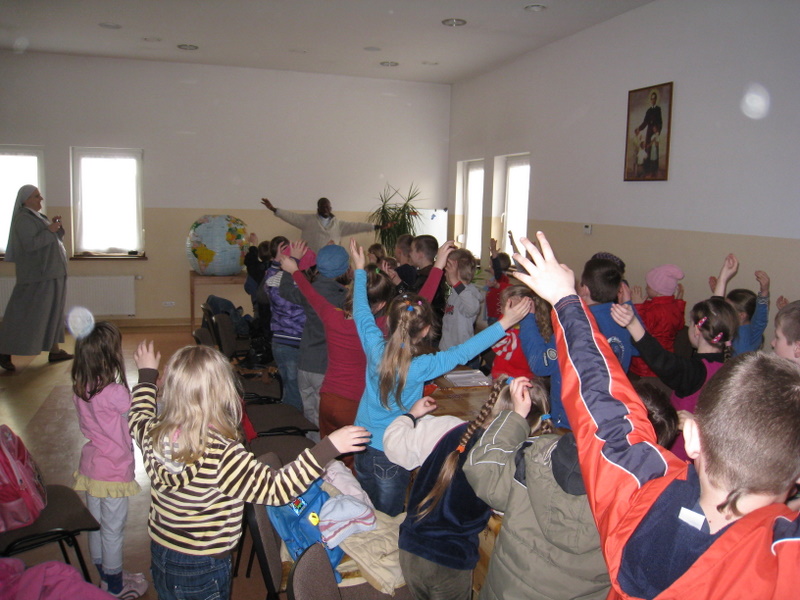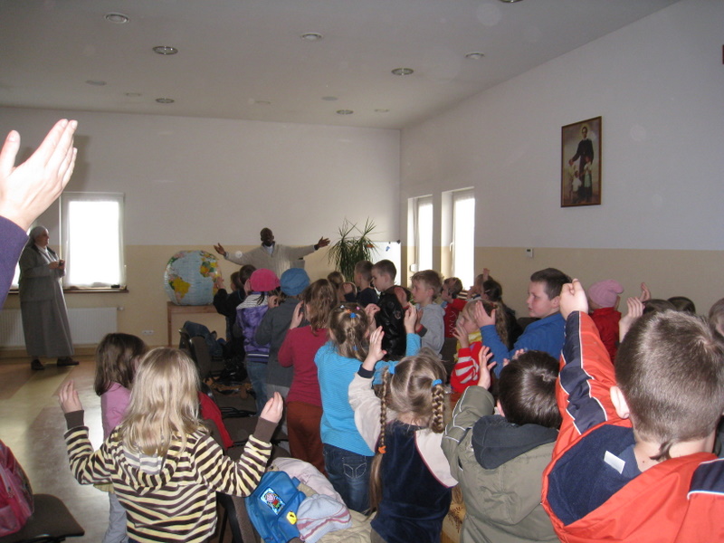 Rekolekcje trwały 3 dni. Prowadziły je siostry klawerianki: Anna i Mieczysława. Poznaliśmy historię dzieci z Afryki i Jana Pawła II. Śpiewaliśmy także piosenki w obcych językach. W ostatni dzień rekolekcji na zaproszenie sióstr pojechaliśmy do Centrum Misyjnego Archidiecezji Poznańskiej. Opiekę nad nami oprócz pań sprawował również ksiądz proboszcz. Miejscem szczególnie interesującym okazało się muzeum misyjne, gdzie zgromadzone zostały eksponaty przywiezione przez misjonarzy z różnych stron świata.