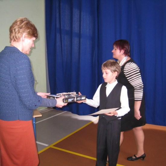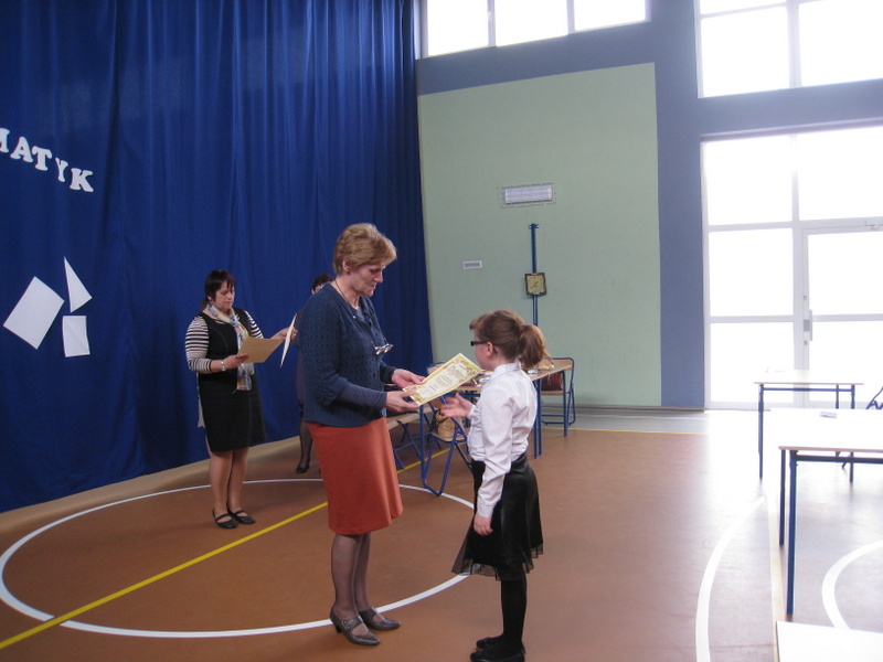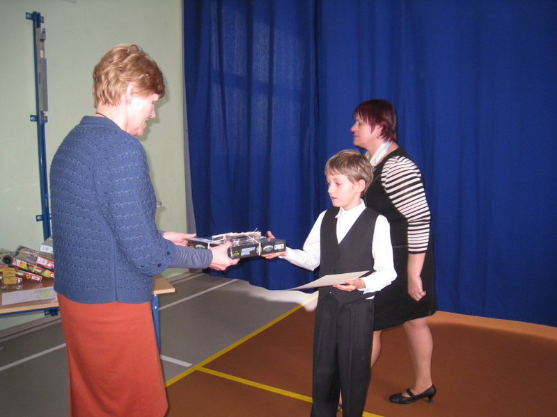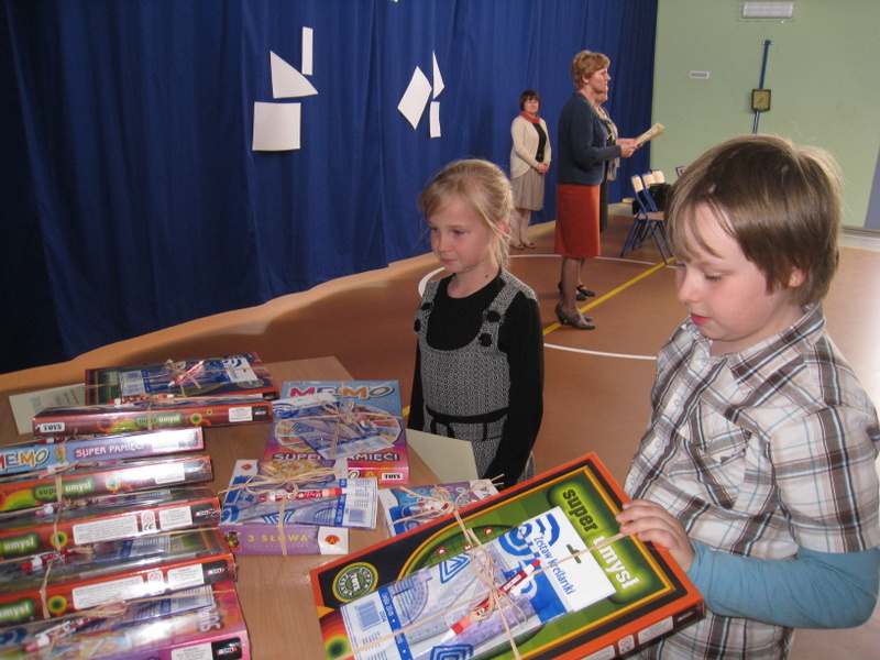 Wszyscy uczestnicy konkursu otrzymali dyplomy za uczestnictwo, nagrody (gry umysłowe, zestawy kreślarskie, długopisy), a laureaci dodatkowo- statuetki dla szkoły. Nagrody zakupiono z funduszu gminy.