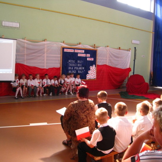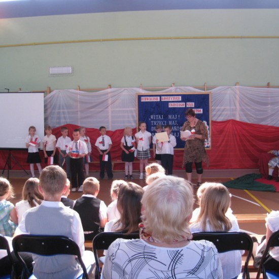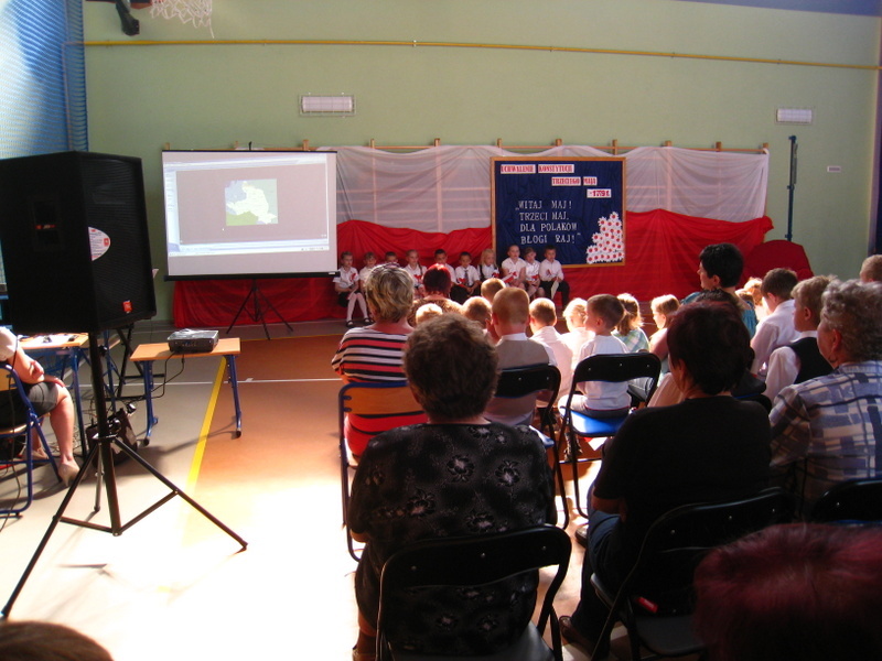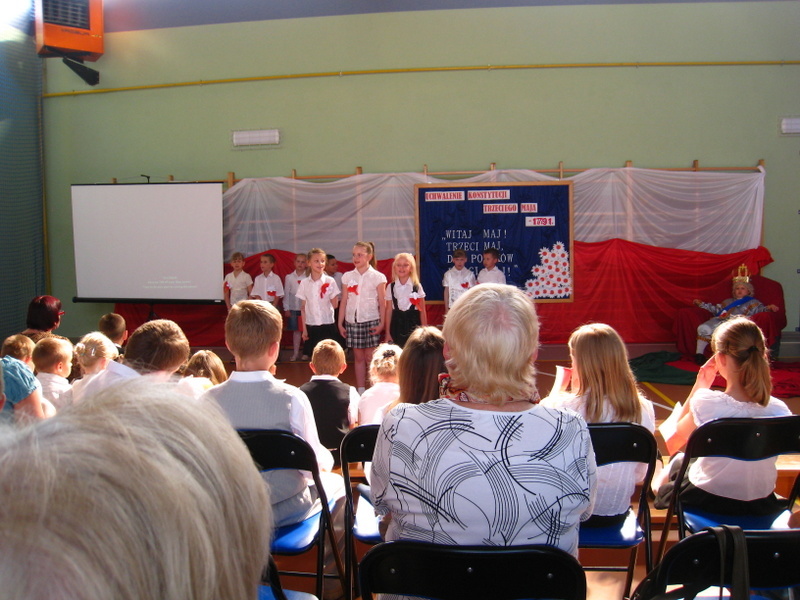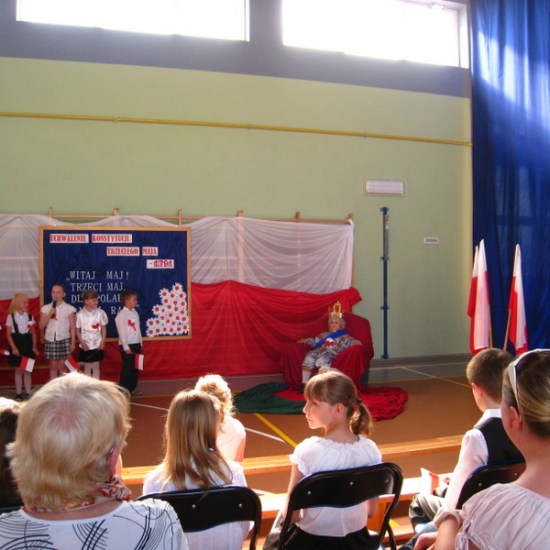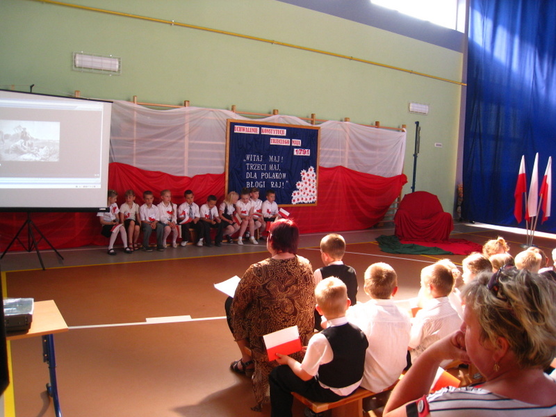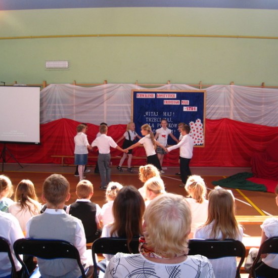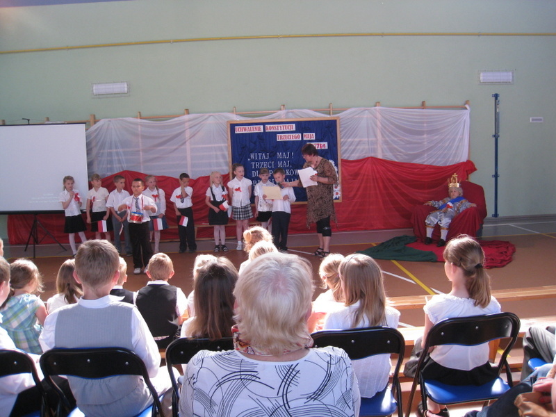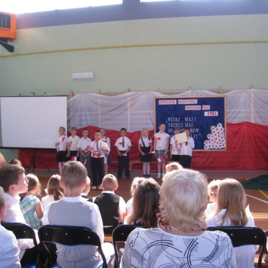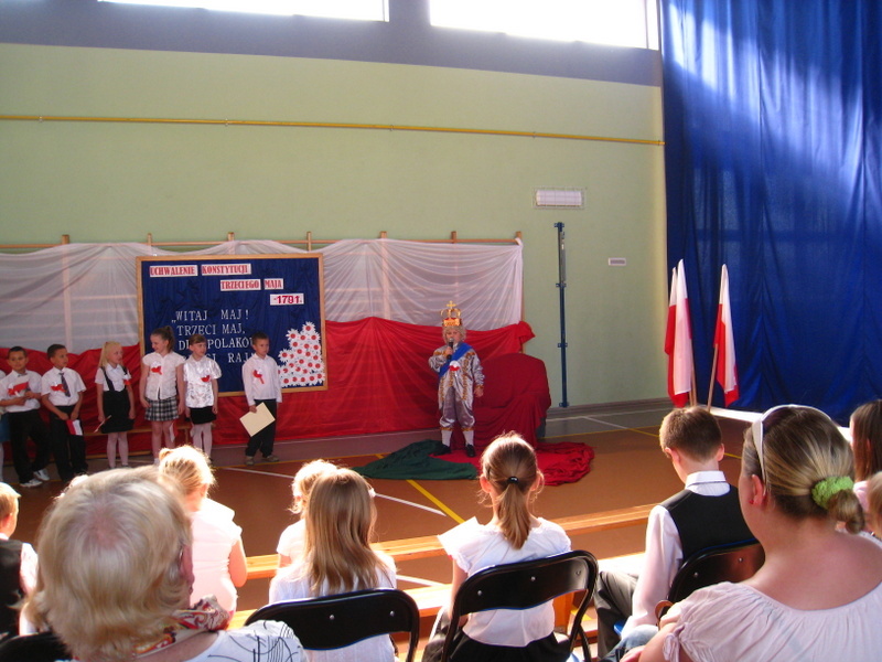 Dnia 30 kwietnia w naszej szkole odbył się apel upamiętniający Konstytucję 3 maja. W roli aktorów wystąpiła pierwsza klasa. Całe przedstawienie zorganizowała wychowawczyni tej klasy – pani Beata Matyjaszczyk. Na występ składała się prezentacja upamiętnijąca wydarzenia z roku 1791 roku. Następnie przy pomocy projektora wyświetlono krótki film, uczniowie zaśpiewali kilka piosenek, a całość zakończono recytacją wierszy. Tłumnie zgromadzona widownia, składająca się z rodziców oraz dzieci innych klas, nagrodziła aktorów gromkimi brawami. Dzięki temu przedstawieniu mamy nadzieję, że już nikt nie zapomni o tym ważnym święcie.
