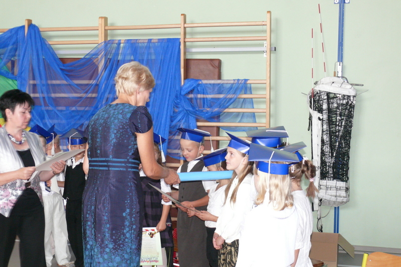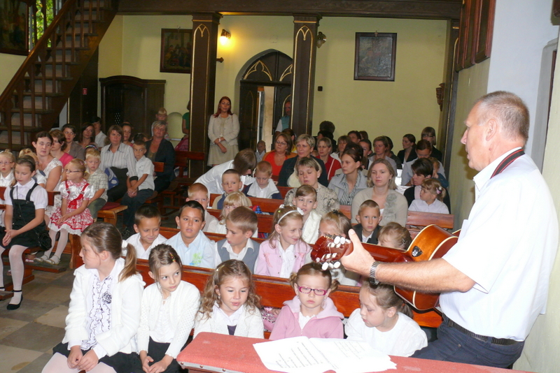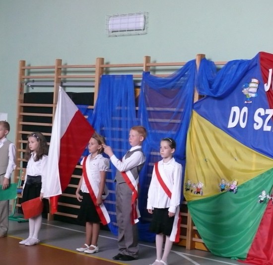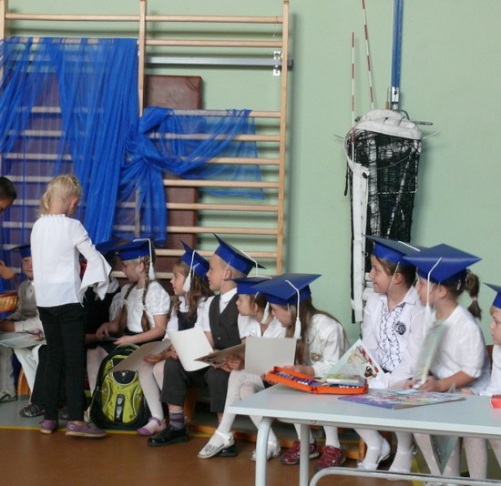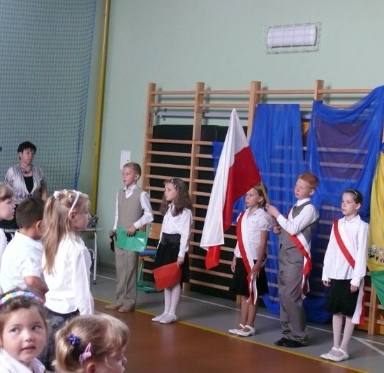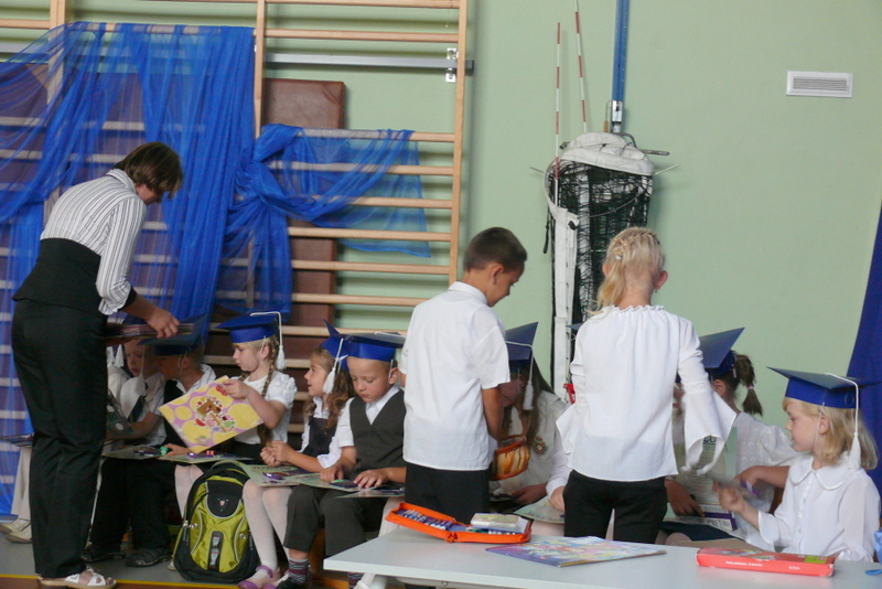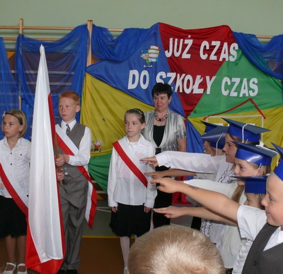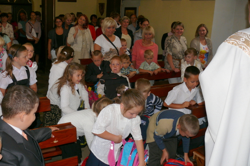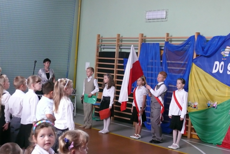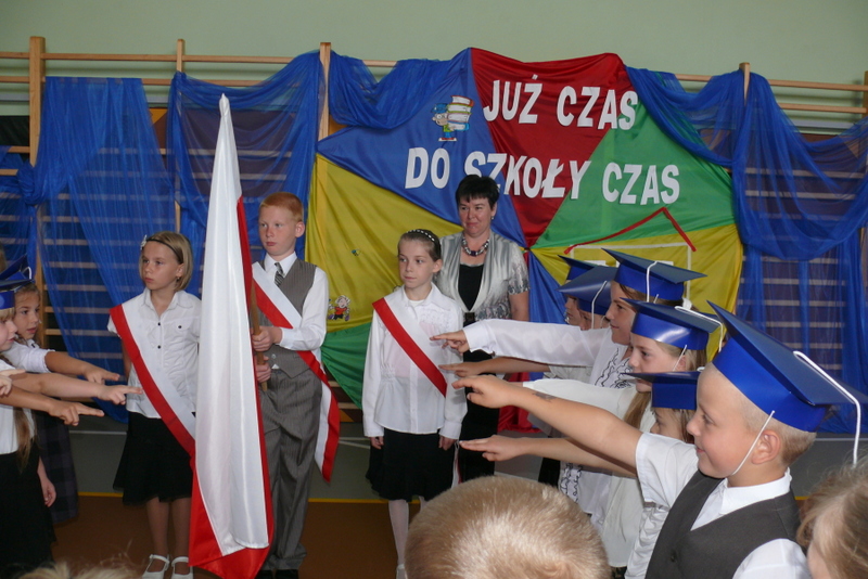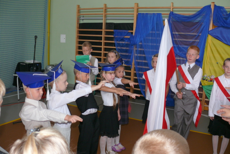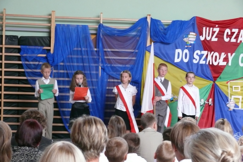 Uczniowie klasy drugiej powitali nowych kolegów słodkościami, a pani z Rady Rodziców przydatnymi szkolnymi upominkami. Całość imprezy uświetnili swoją obecnością rodzice i ksiądz proboszcz. Mamy nadzieję, że kolejne dni bieżącego roku szkolnego upłyną równie miło.