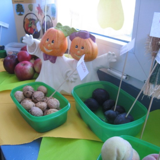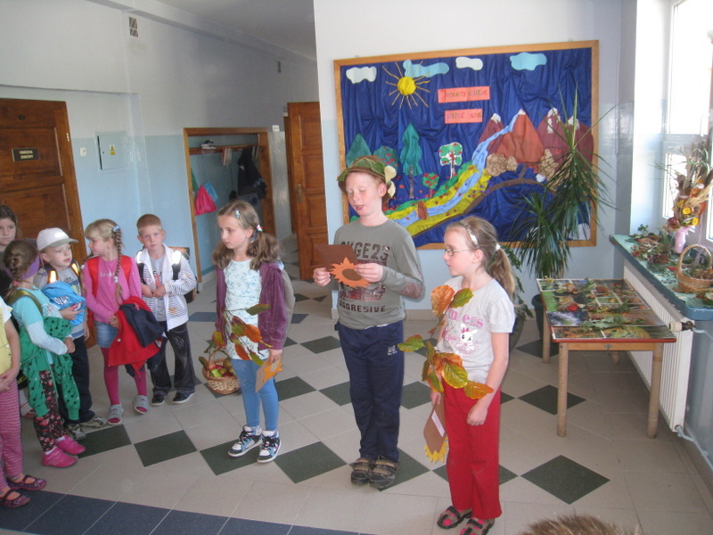 Pierwszym punktem naszego święta było oglądanie wystawek przedstawiających jesienne owoce lasu, sadu i ogrodu. Eksponaty gromadziły wszystkie klasy.
