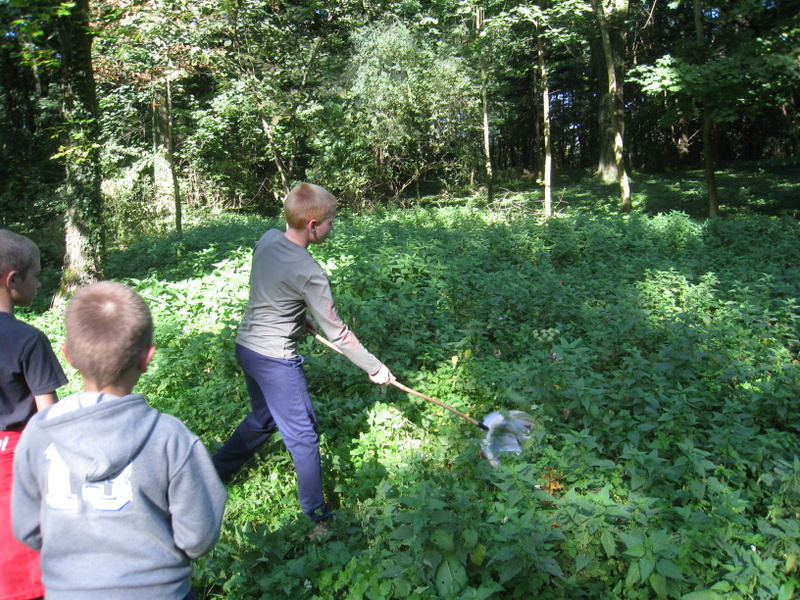 Następnie posililiśmy się pysznym placuszkiem ze śliwkami, po czym poszliśmy do parku, gdzie pani Maria Oleszczuk przekazała nam bardzo dużo informacji na temat pająków oraz różnych owadów i ciekawostek przyrodniczych.