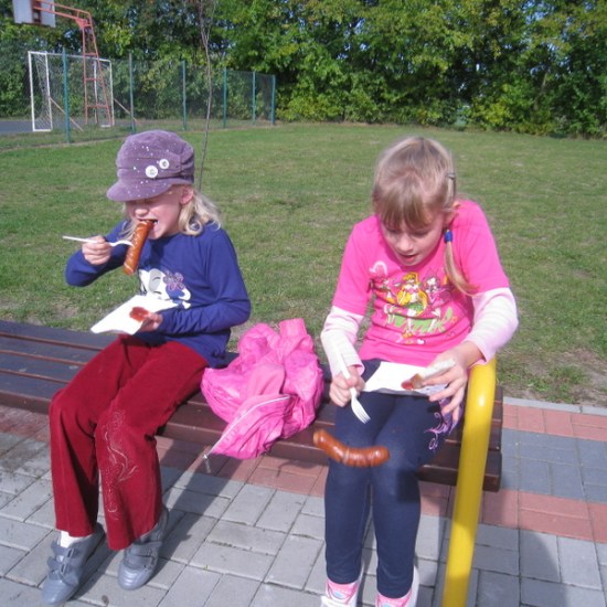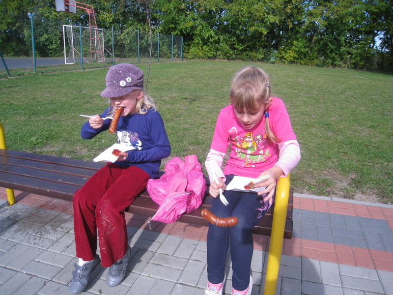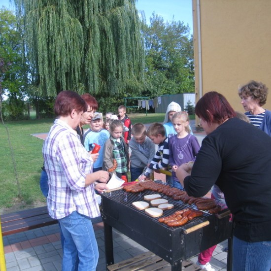 Po powrocie do szkoły mieliśmy grilla, którego przygotował nam pan Jarek wspólnie z panią Marysią i panią Jolą. Dzień ten zapisał się nam mile w pamięci.