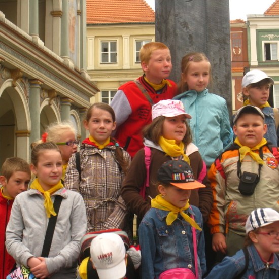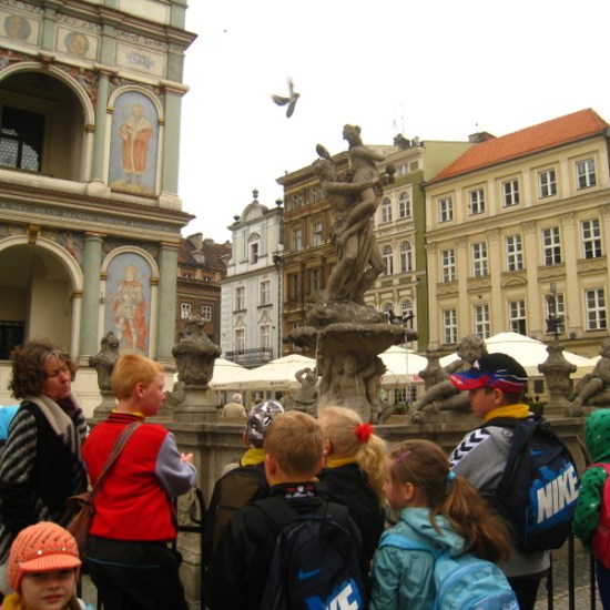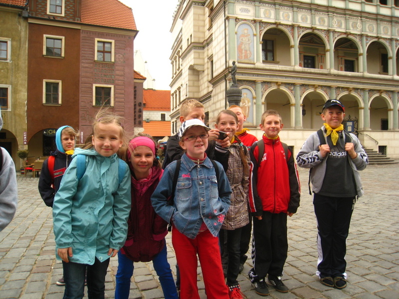 23 maja, w czwartek udaliśmy się na długo oczekiwaną wycieczkę do Poznania. Pogoda spłatała nam figla, gdyż od rana było bardzo zimno. Mimo to dopisywały nam świetne humory. Zaczęliśmy od zwiedzenia Starego Rynku, który uważany jest za jeden z największych i najpiękniejszych w Europie. Naszą uwagę zwrócił Pręgierz, którego historia sięga XVI. Dowiedzieliśmy się, że służył do wymierzania kar. Od tego momentu woleliśmy trzymać się z dala od niego…