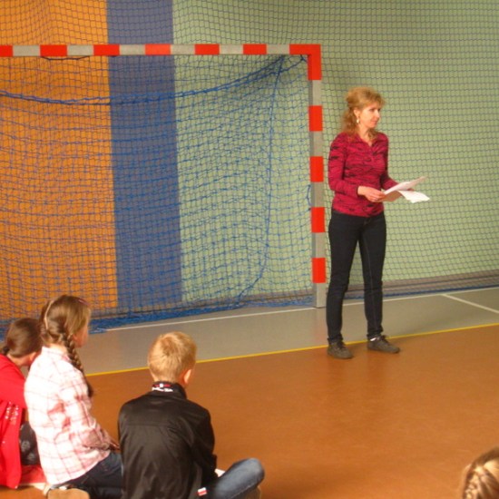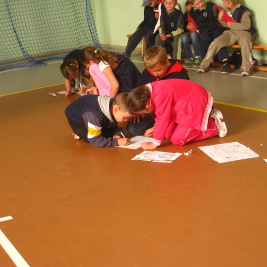 Po wstępnym zapoznaniu uczniowie poszczególnych klas rozwiązywali zadania, rebusy, krzyżówki, układali puzzle tematycznie związane z osobą naszego Patrona. Po tzw. rozgrywkach umysłowych uczniowie współzawodniczyli w grze w dwa ognie. Turew wygrała prawie wszystkie konkurencje umysłowe, natomiast Iłówiec „ograł” nas w dwa ognie. Było jednak fajnie i sądzimy, że to nie pierwsze takie spotkanie.
