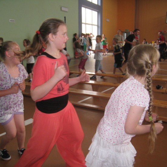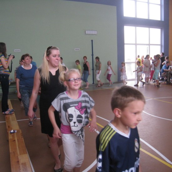 W sobotę, 8 czerwca przybyliśmy do szkoły ze swoimi rodzicami na festyn z okazji Dnia Mamy, Dnia Dziecka i Dnia Taty. Była to też okazja, podobnie jak w ubiegłym roku, do zaprezentowania naszych różnorakich talentów. Na początek kilkoro dzieci mówiło wiersze na powitanie swoich rodziców. Następnie przedszkolacy zatańczyli taniec, który wszystkim bardzo się podobał. Zerówka przedstawiła inscenizację wiersza Juliana Tuwima „Lokomotywa” i zatańczyli. Swoje recytacje zaprezentowali laureaci konkursu gminnego Paula Oleszczuk, Ola Kozak, Ulka Michałkowska i Kacper Nawrocki. Klasa pierwsza zaśpiewała piosenkę o mamie. Starsza i młodsza grupa wiekowa pokazała swoje umiejętności taneczne wyćwiczone na zajęciach z panem Krzysztofem Mylerem.