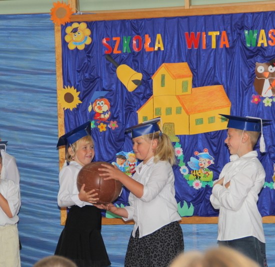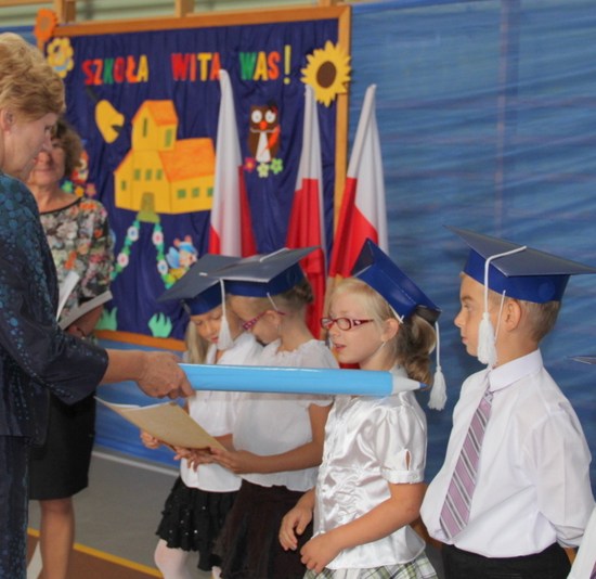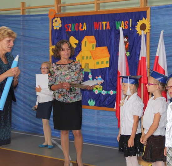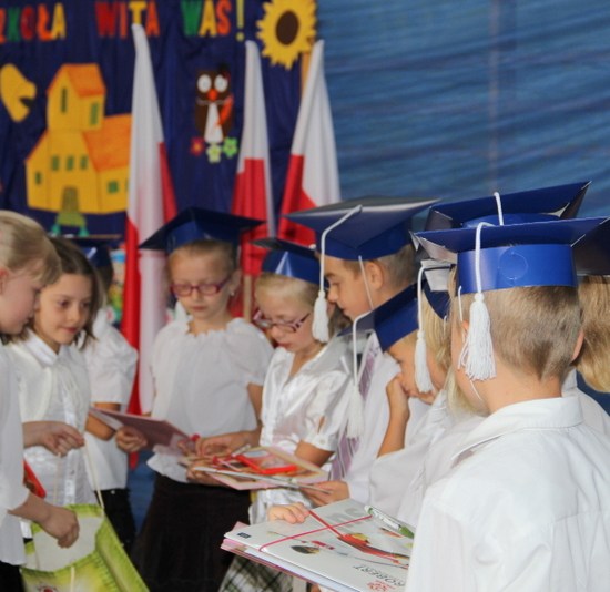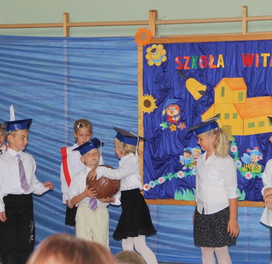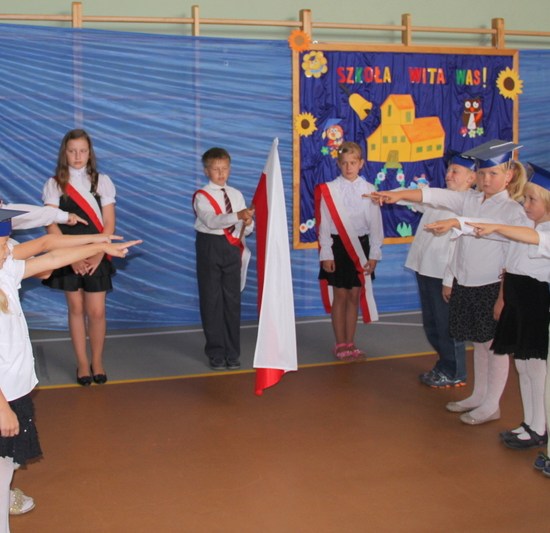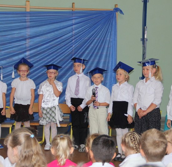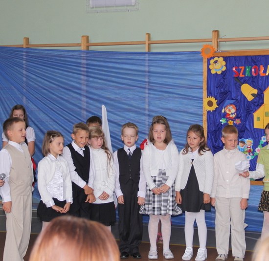 Jak co roku zaczęliśmy mszą św. Następnie udaliśmy się do szkoły. Dzieci przedszkolne powitały nowy rok w swojej sali, reszta szkoły – w sali sportowej. Ola Kozak w imieniu samorządu szkolnego powitała wszystkich przybyłych na uroczystość. Bohaterami dnia byli tradycyjnie pierwszacy: Artur Ogrodowicz, Paulinka Woźna, Adam Kubicki, Michał Kabaciński, Patrycja Banaszak, Zuzia Nowak, Wiktoria Dudkowska, Zosia Buchert.