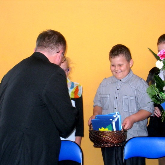 oraz dyrektor szkoły p. Paweł Kaczmarek, Ksiądz proboszcz Wojciech Rzeźnik i przedstawiciele rodziców.
