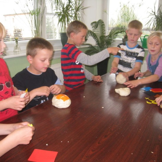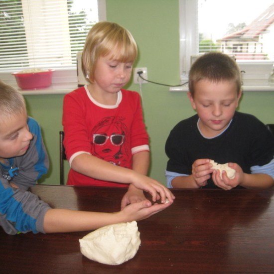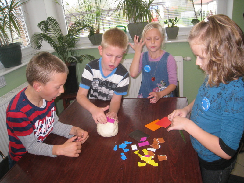 Budujemy naszą planetę, na jądro Ziemi nakładamy płaszcz z masy solnej, a potem z kolorowych kawałków papieru tworzymy skorupę ziemską.