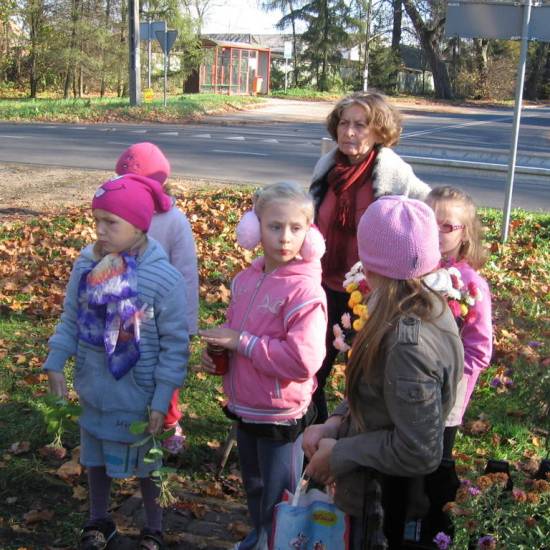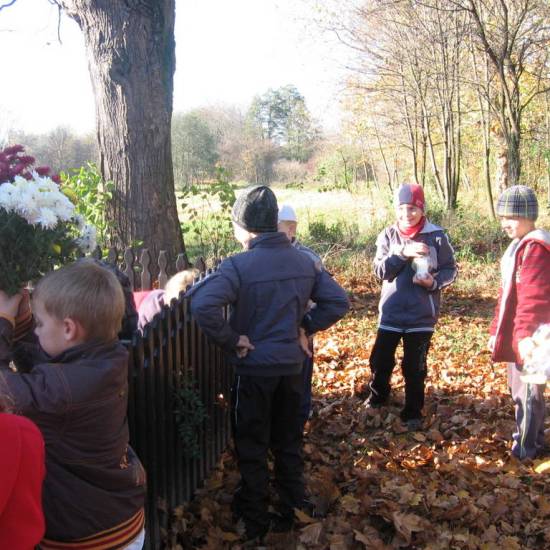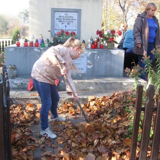 Tradycyjnie co roku nasi uczniowie udają się pod pomnik ofiar wojen 1914-18, 1920. Sprzątamy wokół teren, zgrabiamy liście, składamy kwiaty i zapalamy znicze – światełka pamięci. To nasz drobny wkład na rzecz tych, którzy oddali swoje życie walcząc o honor, wolność i dobro naszej Ojczyzny.