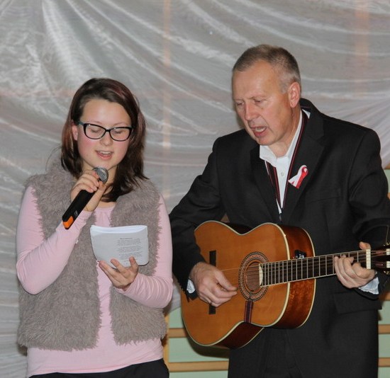 Po emocjach konkursowych przyszedł czas na wspólne śpiewy. Pan Narcyz Skorupski wraz ze swymi córkami Anią i Natalką „porwał” wszystkich do śpiewania znanych pieśni patriotycznych z wydanych na tę okoliczność śpiewników. Uroczystość zakończono odśpiewaniem Roty.