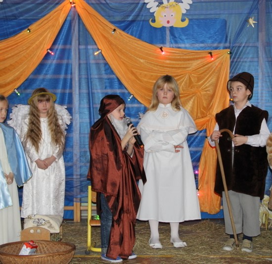 Głównymi aktorami tegorocznych jasełek byli przedszkolacy i pierwszoklasiści wspomagani przez starszych kolegów;