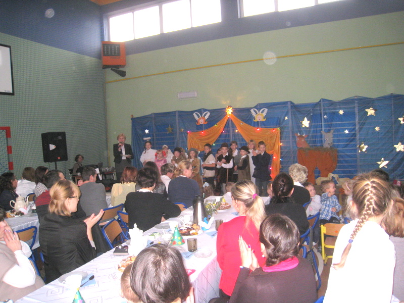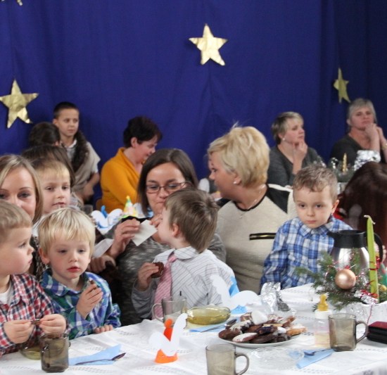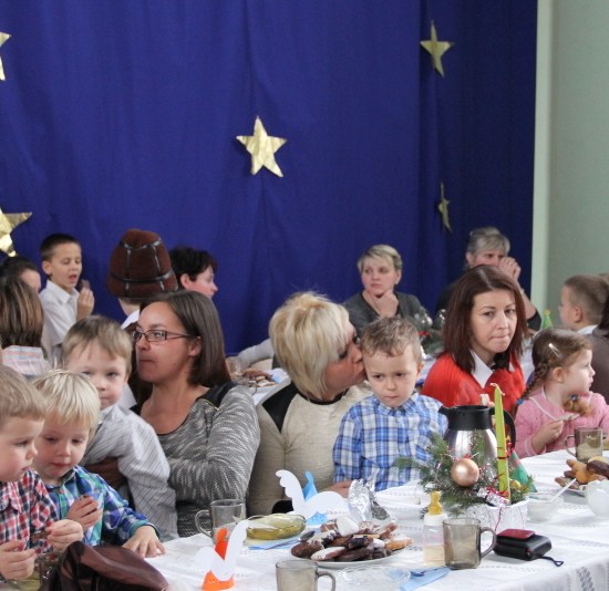 Licznie przybyli rodzice gromko oklaskiwali wspaniały występ swoich pociech. Na koniec dzieląc się opłatkiem wszyscy składali sobie życzenia.