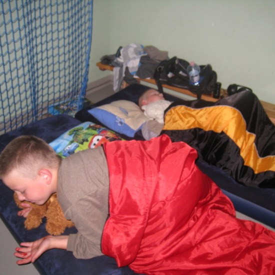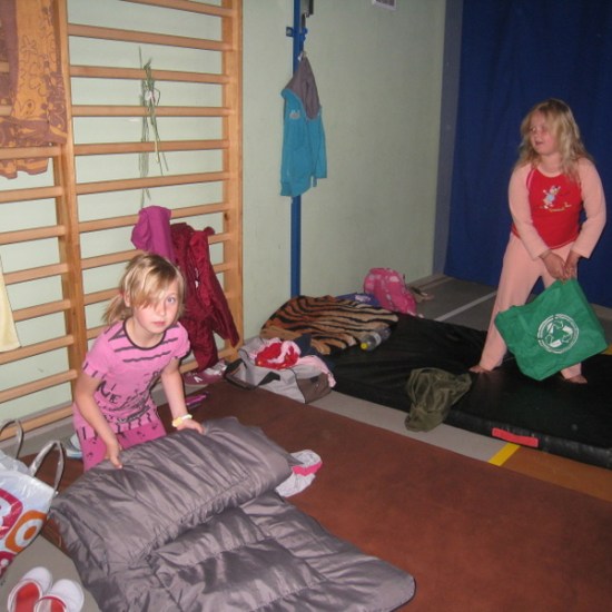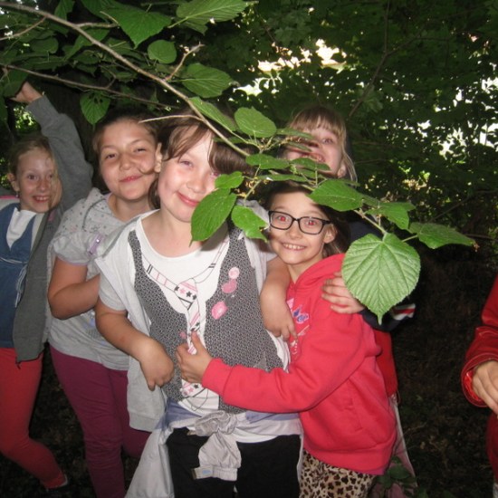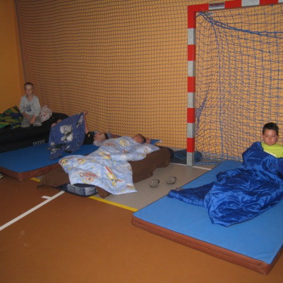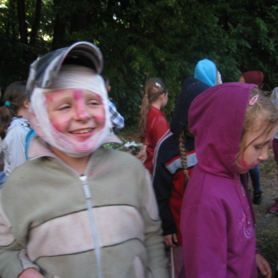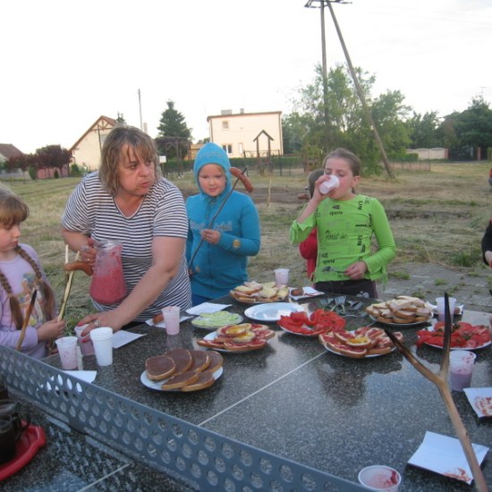 Była zbiórka w szkole. Zaczęliśmy od zjedzenia podwieczorku, były to pyszne lody z bitą śmietaną, truskawkami i galaretką. Potem była zbiórka i panie przedstawiły nam program biwaku, przypomniały też regulamin. Rozpoczęliśmy zabawę w podchody. Klasa I i II chowały się, a klasa trzecia szukała. Po drodze zostawialiśmy klasie trzeciej zadania, np. przejście w parach z połączonymi za pomocą sznurowadeł nogami, ułożenie piosenki, czy opatrzenie rannych. Pogoda była bardzo zmienna, raz wychodziło słońce, to znów padał deszcz, ale przetrwaliśmy wszystko. Oczywiście trzecia klasa nas znalazła i wykonała wszystkie zadania.