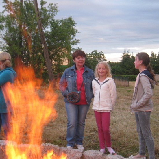 Po podchodach czekała na nas kolacja. Jedliśmy ją przy ognisku, smażyliśmy też kiełbaski. Później były zabawy wokół ogniska i czas wolny. Czekaliśmy na najfajniejszą zabawę w ciemności. Chętni mogli zdobyć certyfikat odwagi. Przedtem pani Krysia opowiedziała nam legendę o generałowej Chłapowskiej. Certyfikat mógł zdobyć ten, kto przejdzie samotnie w ciemności 100 m i znajdzie skarb. Wszyscy zadanie wykonali.