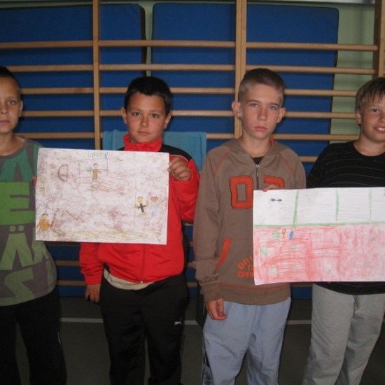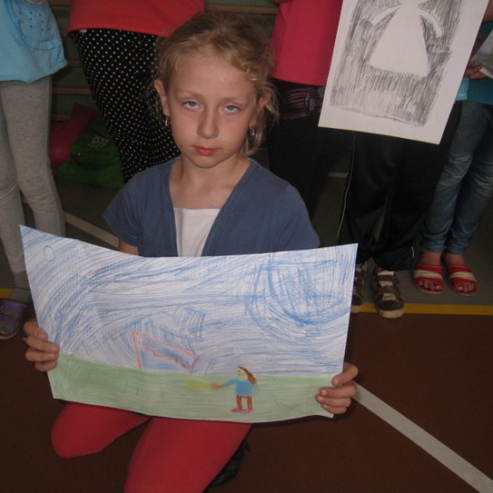 Zaczęliśmy od gimnastyki porannej, potem było mycie i sprzątanie. Nasze mamy i dziewczynki z klasy trzeciej przygotowały pyszne śniadanie. Niektórzy się pakowali, inni poszli z panią na plac zabaw. Znów poczęstowano nas wspaniałym ciastem, deserem lodowym i koktajlem. Przystąpiliśmy do malowania kredą wrażeń z biwaku. Obejrzeliśmy też slajdy z poprzedniego dnia. Bawiliśmy się w kalambury. Czas biwaku dobiegł końca, trzeba było wracać do domu. Chcielibyśmy to powtórzyć!!!