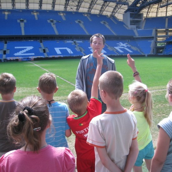 Czwarty dzień półkolonii. Dziś byliśmy w Poznaniu. Zwiedziliśmy stadion Lecha oraz lotnisko im. Henryka Wieniawskiego na Ławicy.