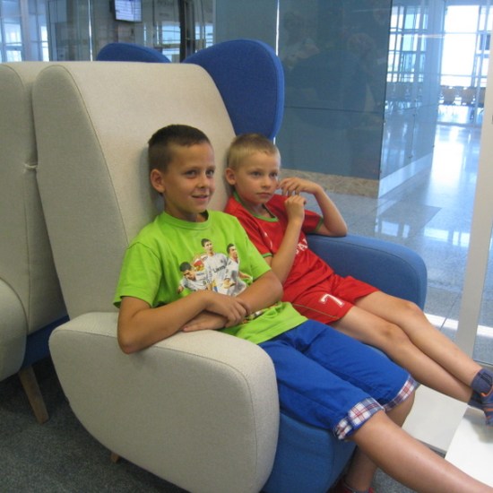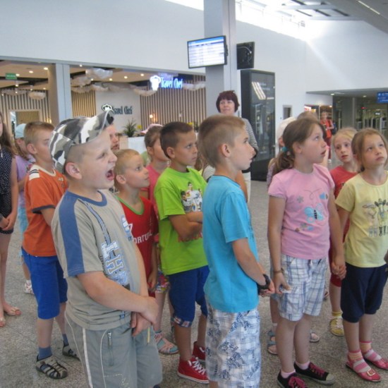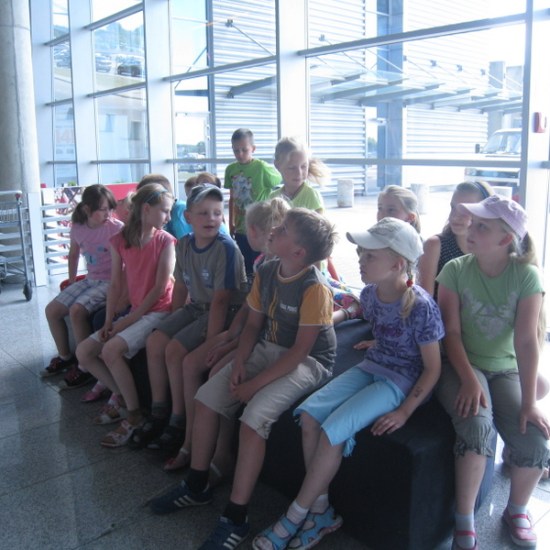 Zwiedziliśmy terminal pasażerski w części ogólnodostępnej wraz z antresolą i tarasem widokowym, przeszliśmy „ścieżkę pasażera”, a więc otrzymaliśmy okazjonalne „karty pokładowe” przy stanowiskach check-in, zapoznaliśmy się z zasadami obowiązującymi w trakcie kontroli bezpieczeństwa. Podczas przejścia przez kontrolę bezpieczeństwa do hali odlotów było trochę niepewności i emocji (niektórzy musieli poddać się kontroli osobistej). Weszliśmy nawet do salonu Business Executive Lounge. Udało nam się zobaczyć start samolotu Lufthansy. Było bardzo przyjemnie i ciekawie, a nasi przewodnicy zarówno na stadionie, jak i na lotnisku -przemili.