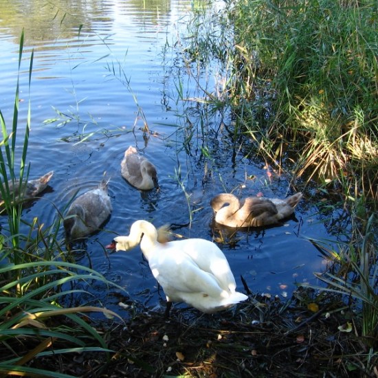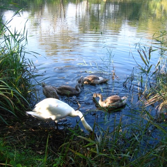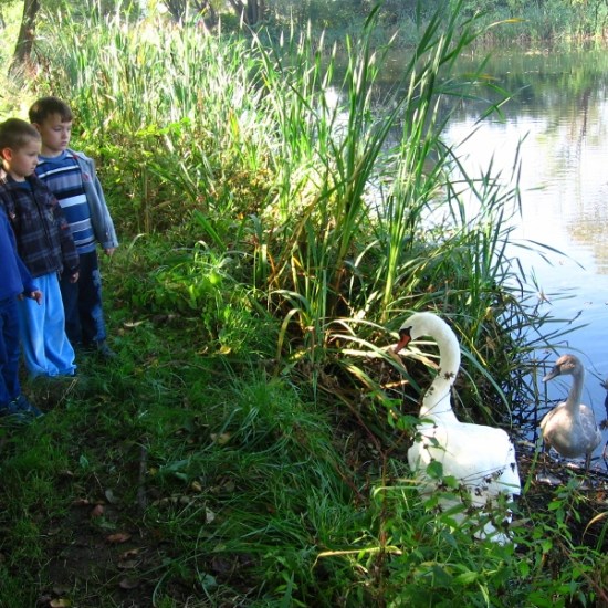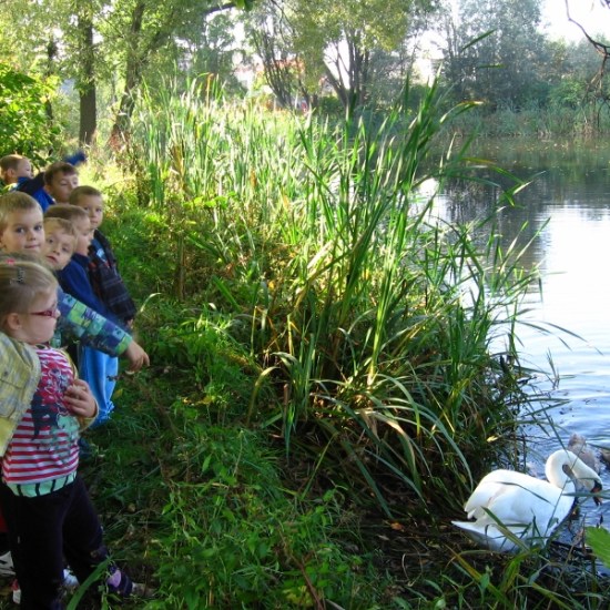 Podczas codziennych spacerów, dzieci z zerówki chodzą nad staw, po którym pływa rodzina łabędzi (mama, tata i czworo dzieci). Kiedy tylko łabędzie posłyszą zbliżające się dzieci z zerówki, podpływają szybko do brzegu. Rodzice ze swoimi ,,brzydkimi kaczątkami” czekają na przysmaki, które przyniosą im zerówkowicze. W podzięce za chleb łabędzie machają skrzydłami i wydają radosne dźwięki.