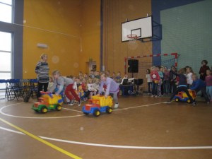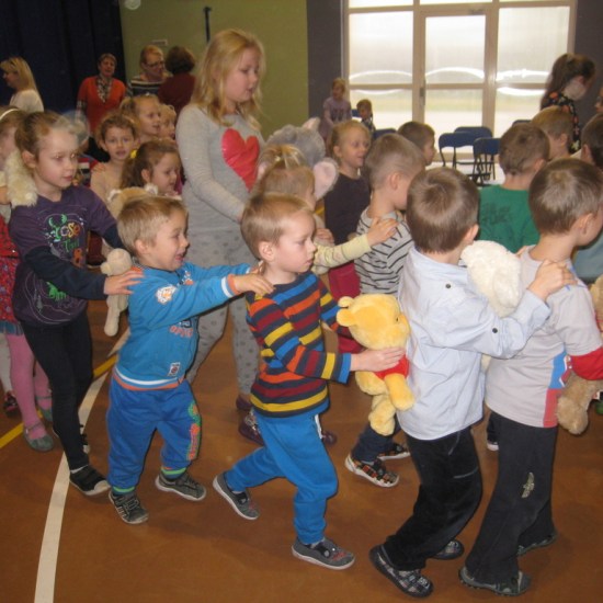 Na początku obejrzeliśmy krótką prezentację na temat historii „Światowych Dni Pluszowego Misia”. Potem braliśmy udział w różnych konkursach, podczas których każdy uczestnik i ten zupełnie mały i ten trochę starszy, mógł zdobyć jakiś upominek, które ufundowali właściciele sklepu „KAJTEK” w Kościanie. Śpiewaliśmy również piosenki i tańczyliśmy z naszymi przytulankami przy akompaniamencie różnych piosenek. Nie zabrakło również urodzinowego tortu, który na te okazję upiekła pani Gajewska. Zabawy było, co niemiara!
