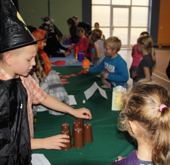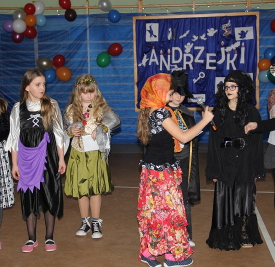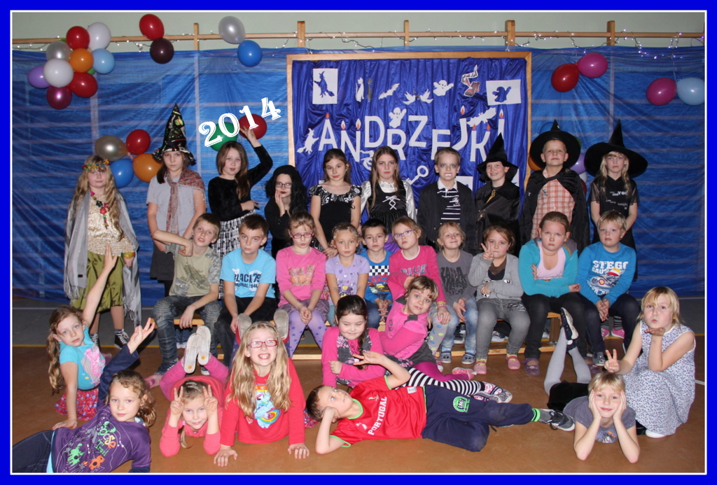 W czwartek odbyły się szkolne andrzejki przygotowane przez klasę trzecią. Uczniowie przebrani w stroje czarnoksiężników, magów, czarownice, wróżki, cyganki i wiedźmy, a nawet wampira wróżyli dzieciom z klasy drugiej i pierwszej. Agata wróżyła z zaczarowanej kuli, Natalia i Michał zrobili wróżbę z kolorami, Karolina i Magda przepowiadały przyszłość z kwiatów. Kacper i Karolina mieli duże czerwone serca z imionami, a Weronika magiczne karty. Magda starała się odpowiedzieć na pytanie „Kim zostaniesz w przyszłości”. Wojtek wróżył kubeczkami, w których były ukryte różne przedmioty-symbole małżeństwa, staropanieństwa itp. Po wróżbach wszyscy udali się na pyszne placki pieczone przez nasze mamy. Nie zabrakło też wróżby z butami. Wygrali Natalia i Michał. Para odtańczyła wspólny taniec. Wszyscy wspaniale bawiliśmy się z Olą przy piosence „Ale, ale Aleksandra”. Był także taniec z balonikami i wiele innych fajnych zabaw. Moje koleżanki i koledzy wspaniale się bawili i pewnie będą miło wspominać andrzejki 2014.