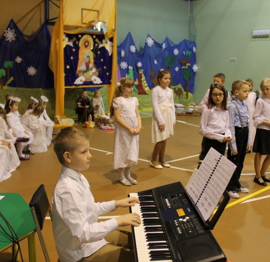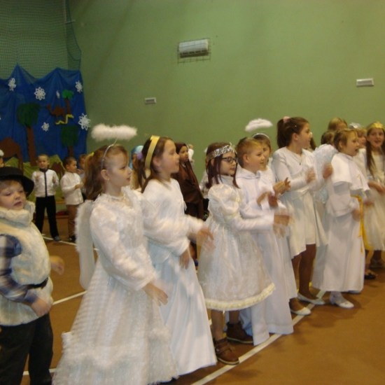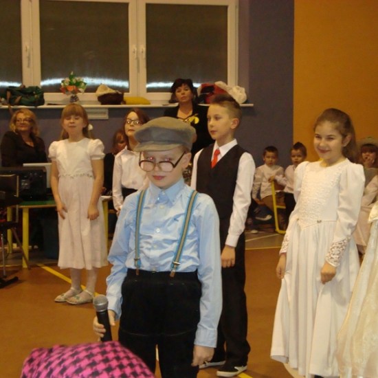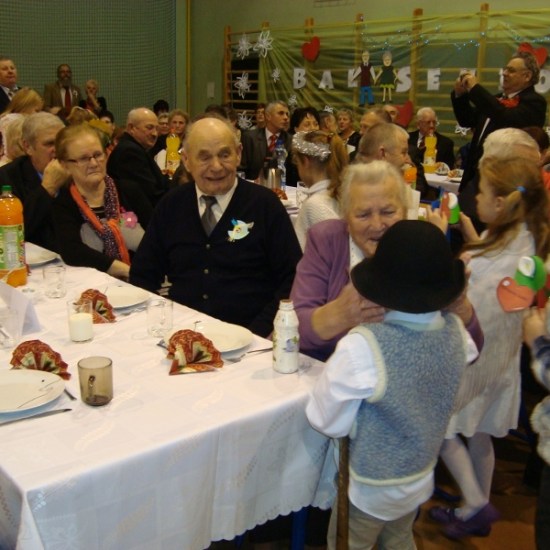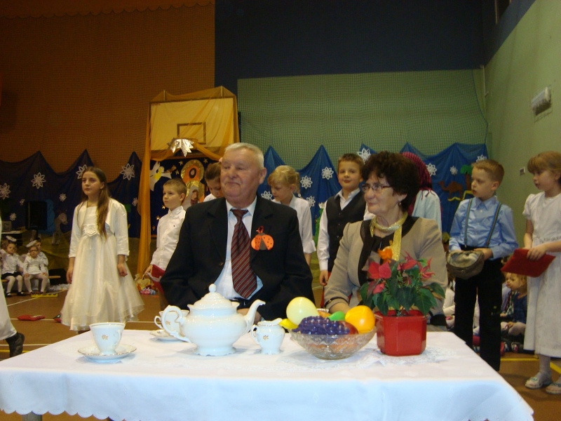 Aby uczcić nasze babcie i naszych dziadków przygotowaliśmy dla nich część artystyczną. Na początku zaprezentowaliśmy jasełka, następnie w tańcu z kolorowymi pomponami zaprezentowały się nasze przedszkolaki. Klasa III przygotowała taniec chocolate, wierszyki, piosenki i krótką inscenizację o babci i dziadku, a nasz kolega Kacper zagrał na organkach kilka utworów muzycznych. Na zakończenie uroczystości zaśpiewaliśmy naszym babciom i dziadkom „sto lat” i wręczyliśmy przygotowane upominki.