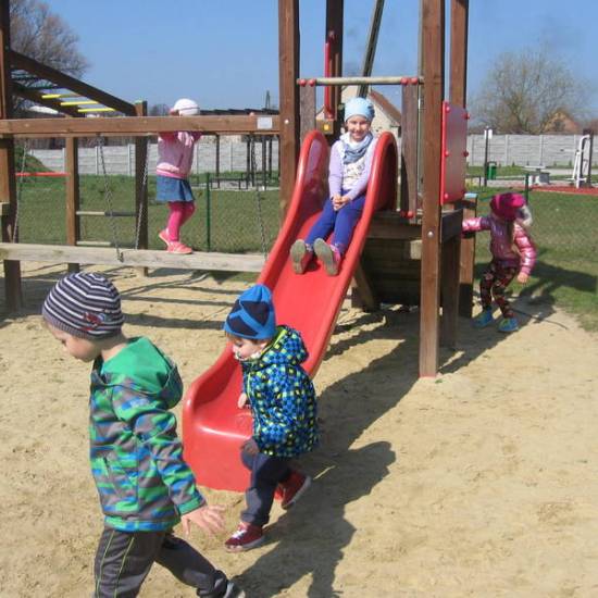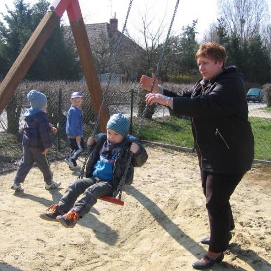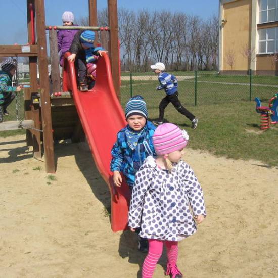 Dziś w ogródku spotkały się najstarsze dzieci z najmłodszymi. Była też okazja do zabawy.