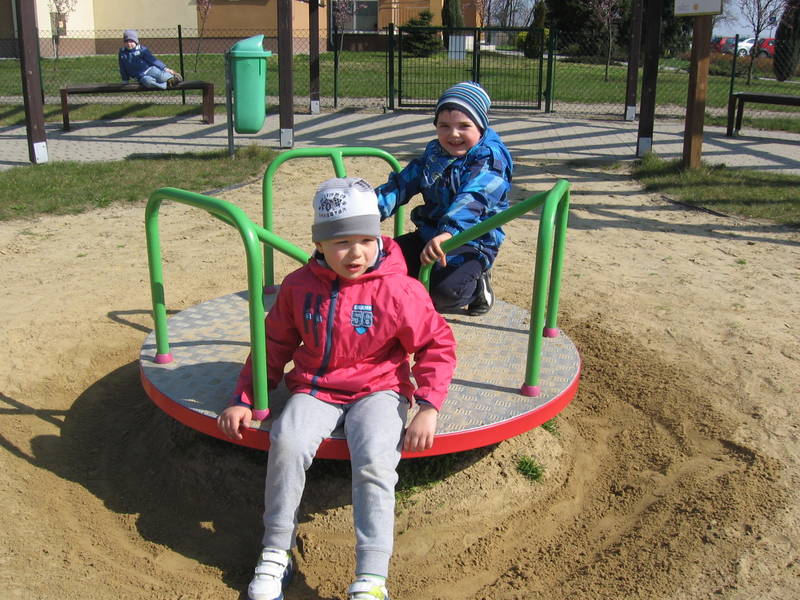 Dziś w ogródku spotkały się najstarsze dzieci z najmłodszymi. Była też okazja do zabawy.