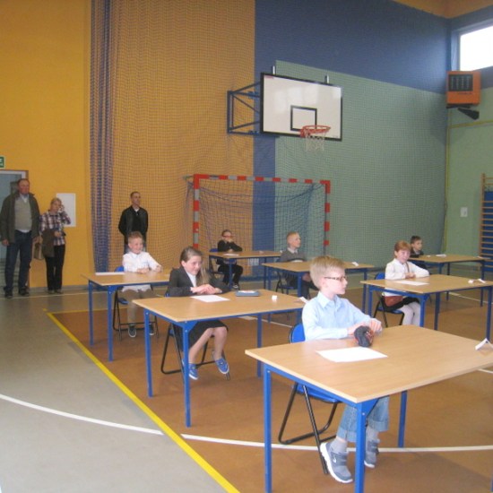 Dziś nasza szkoła miała przyjemność gościć największe talenty matematyczne klas trzecich z całej gminy. Ogółem do konkursu przystapiło 13 uczniów ze szkół w Kiełczewie, Racocie, Starym Luboszu i w Turwi. Naszą szkołę reprezentowali: Agata Belka, Magda Jankiewicz i Kacper Nawrocki. Tradycyjnie uczestnicy konkursu w ciągu 45 minut mieli do rozwiazania 15 zadań o różnym stopniu trudności. Trzeba było wykazać się umiejętnością logicznego myślenia, znajomością kalendarza, zegara, obliczeń pieniężnych, a nawet trzeba było umieć poradzić sobie z przejazdem trasy w jak najkrótszym czasie, mając podane ograniczenia prędkości i długość odcinków. Można było uzyskać 30 punktów, ale widać zadania były tak trudne, że nikomu nie udało się osiągnąć tego wyniku. Zadania przygotowały panie Dorota Gronczewska i Beata Matyjaszczyk, a w komisji obok wspomnianych nauczycielek zasiadła też pani Monika Springer z SP Racot. Po sprawdzeniu wszystkich prac okazało się, że aby wyłonić SUPERMATEMATYKA trzeba zrobić dogrywkę. Po dogrywce wszystko było już jasne.
