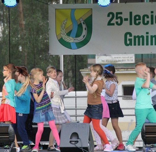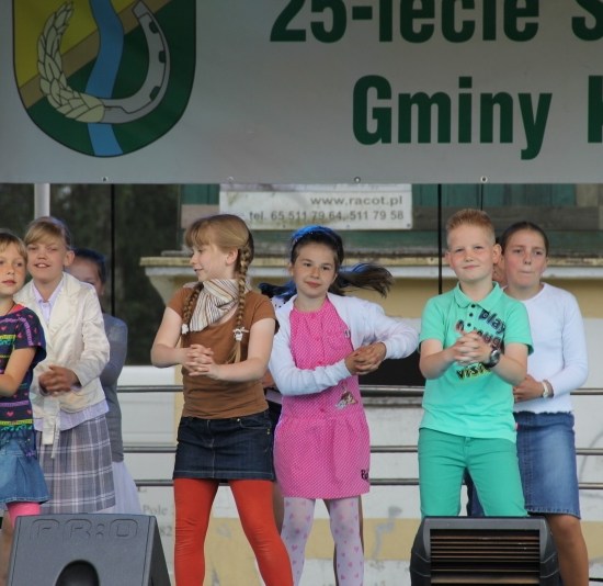 29 maja na stadionie hippicznym w Racocie miała miejsce impreza z okazji 25- lecia Samorządu Gminy Kościan. Grupka uczniów z naszej szkoły zaprezentowała tam układ taneczny do piosenki „Chocolate” . Nasz występ został przyjęty bardzo ciepło przez widownię i chyba się podobał, bo zostaliśmy nagrodzeni dużymi brawami. Podczas imprezy było przygotowanych także dość dużo atrakcji dla dzieci, dlatego po występach pozostaliśmy jeszcze przez chwilę z rodzicami, aby się pobawić w dmuchanym zamku, pływających kulach oraz wziąć udział w zajęciach plastycznych polegających na ozdobieniu specjalnymi farbami wyciętego ze sklejki kotka.