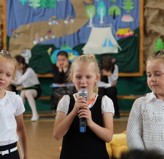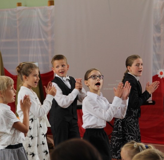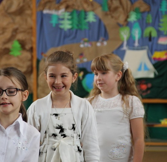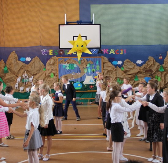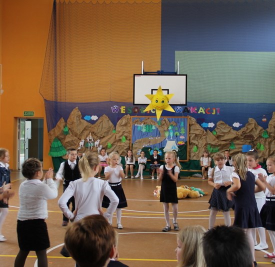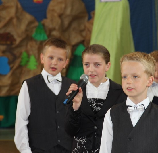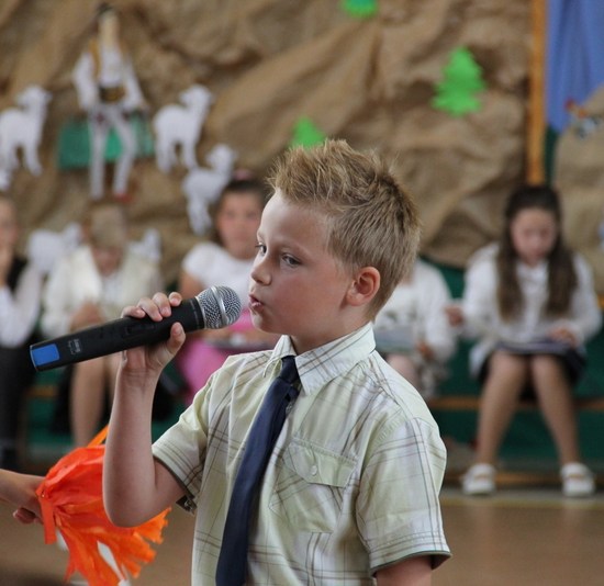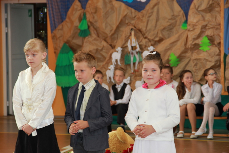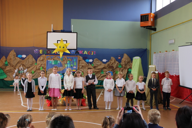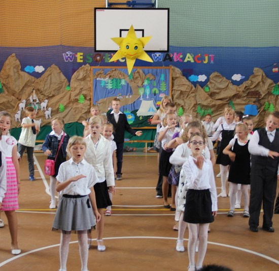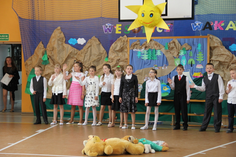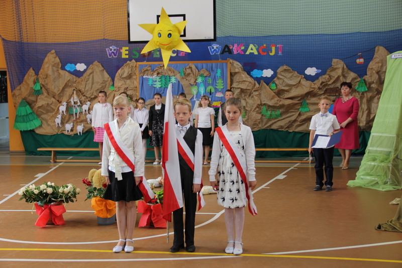 Zakończenie roku szkolnego 2014/2015 rozpoczęliśmy od Mszy św., po której wraz z nauczycielami i rodzicami udaliśmy się do szkoły. Po powitaniu przybyłych na uroczystość gości i odśpiewaniu hymnu państwowego, nastąpiło uroczyste przekazanie flagi państwowej uczniom klasy drugiej. Następnie pani kierownik Krystyna Nowak dokonała podsumowanie pracy dydaktyczno-wychowawczej w naszej szkole. Miłym akcentem tego wystąpienia było wręczenie dyplomów i nagród książkowych laureatom konkursów gminnych i powiatowych, a także podziękowanie skierowane do rodziców angażujących się w pracy na rzecz szkoły.