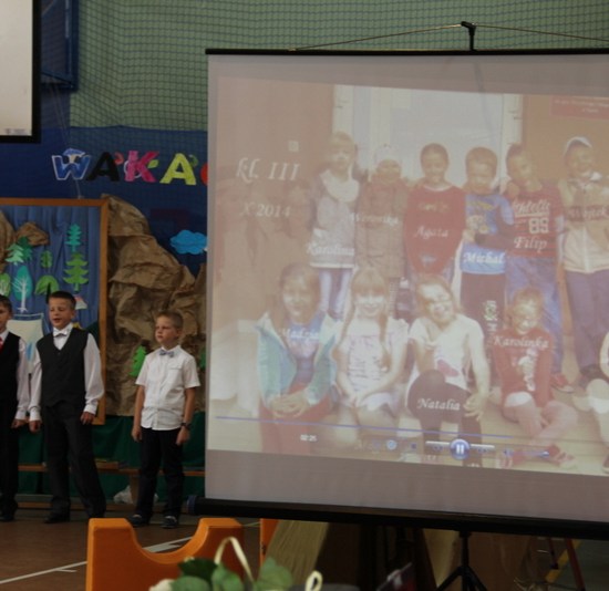 Uroczystość zakończenie roku szkolnego zdominował jednak nastrój pożegnania z klasą trzecią. Uczniowie tej klasy przez trzy lata pod kierunkiem wychowawczyni p. Krystyny Nowak sumiennie i z ogromnym zaangażowaniem współtworzyli życie naszej szkolnej społeczności, biorąc aktywny udział w pracach Samorządu Uczniowskiego, przygotowywaniu różnych imprez i uroczystości, redagowaniu wpisów na naszej szkolnej stronie internetowej. Wielokrotnie reprezentowali także imię naszej szkoły biorąc udział w różnych konkursach na szczeblu gminy i powiatu. A co najważniejsze, byli niezwykle sympatycznymi kolegami i koleżankami. Zawsze można było na nich liczyć, a młodszych kolegów i koleżanki otaczali opieką i troską. „Będzie nam was bardzo brakowało…” Żegnamy się z wami, ale nie rozstajemy. Mamy nadzieje, że chętnie będziecie nas nadal odwiedzać. Życzymy wam wielu sukcesów i równie sympatycznych kolegów, koleżanek i nauczycieli w nowej szkole. Powodzenie!!!
