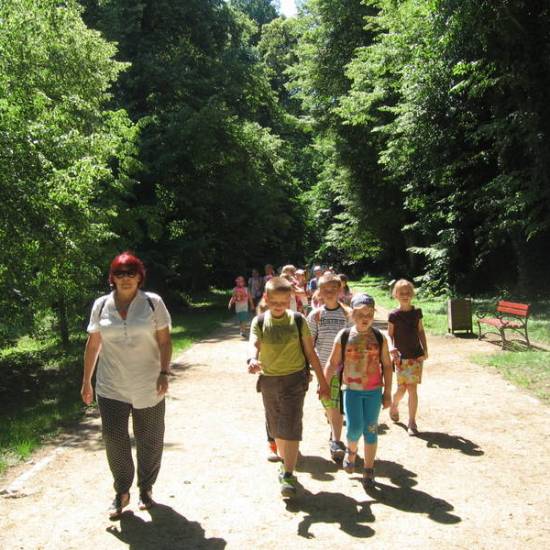 Kolejny dzień to nowy kierunek wyprawy – północny wschód – Kórnik. Zanim jednak dojechano do Kórnika, warto było zatrzymać się w Manieczkach (słynących niegdyś z siedziby autora hymnu Józefa Wybickiego, a teraz nieco zapomnianych). Udało się jednak pani Marii i Katarzynie Zmarz oraz pani Justynie Poterek pokazać stary dworek Wybickiego i park w Manieczkach i wcisnąć w dziecięce umysły nieco historii. Na podstawie przygotowanej mapy, pytań, zagadek i rebusów dzieci miały znajdować poszczególne okazy przyrodnicze, miejsca, daty oraz wcześniej poznane fakty dotyczące zwiedzanego parku. Po umysłowym wysiłku zrelaksowano się na statku i Tawenie pod Żaglami. W drodze powrotnej zboczyliśmy z trasy, by dotrzeć do starych rogalińskich dębów i dawnej rezydencji Raczyńskich w Rogalinie.