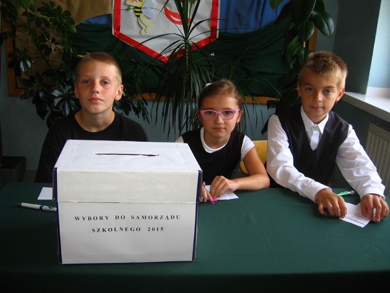 14 września 2015 roku odbyły się w naszej szkole wybory do samorządu szkolnego. W tym dniu wszyscy uczniowie klasy trzeciej przyszli elegancko ubrani. Zestresowani kandydaci z przejęciem czekali na wybory. Głosowali wszyscy uczniowie klas I – II i kl. III. Najwięcej głosów bo aż 17 zdobył Adam Kubicki, który został przewodniczącym. Ja zajęłam drugie miejsce i jestem zastępcą. Po wyborach wszyscy byli zmęczeni i mieli dużo sprzątania.