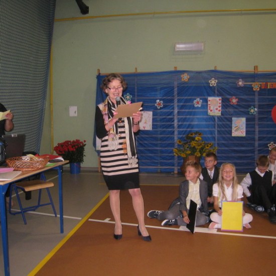 Uroczystość z okazji Dnia Edukacji prowadziła Zuzia i Adam z klasy III. Razem z panią Dorotą i panią Beatą oraz kolegami i koleżankami z kl. II i III przygotowaliśmy występy. Na uroczystość przybyli również emerytowani nauczyciele i pracownicy naszej szkoły. Śpiewaliśmy różne piosenki. Piosenkę „Kamień z napisem love” śpiewała Zuza i Adam. Ja i pozostałe koleżanki i koledzy śpiewaliśmy jej refren i tańczyliśmy.Potem zadawaliśmy naszym nauczycielom i pracownikom szkoły różne zagadki. Pani Krysia Nowak i pani Marysia Zmarz oraz pan Jarek musieli napisać kilka zdań o sobie. Potem panie czytały to i sprawdzały czy odpowiedzi zgadzają się z naszymi obserwacjami. Było bardzo śmiesznie.