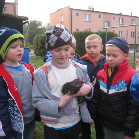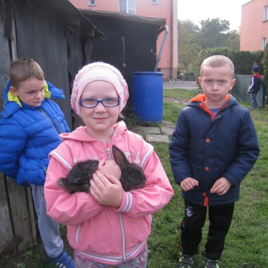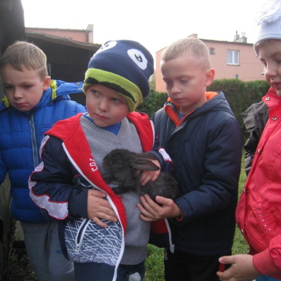 Klasa I rozpoczęła nowy cykl lekcji poświęcony domowym zwierzaczkom. Z tej okazji zostaliśmy zaproszeni przez tatę Adasia do obejrzenia hodowli królików. Wcześniej przebywał u nas w klasie przez cały dzień chomik Adasia. Jak widać na załączonych obrazkach dzieci uwielbiają taki kontakt ze zwierzętami. (kn)