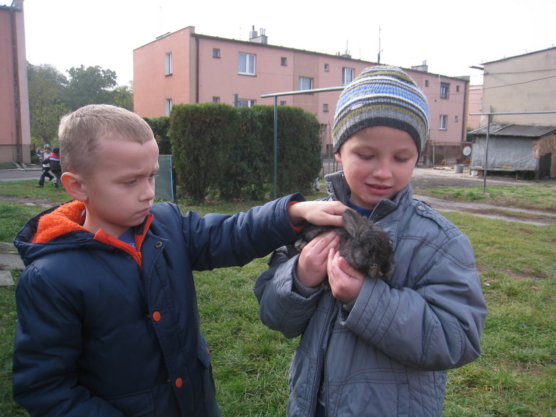 Klasa I rozpoczęła nowy cykl lekcji poświęcony domowym zwierzaczkom. Z tej okazji zostaliśmy zaproszeni przez tatę Adasia do obejrzenia hodowli królików. Wcześniej przebywał u nas w klasie przez cały dzień chomik Adasia. Jak widać na załączonych obrazkach dzieci uwielbiają taki kontakt ze zwierzętami. (kn)